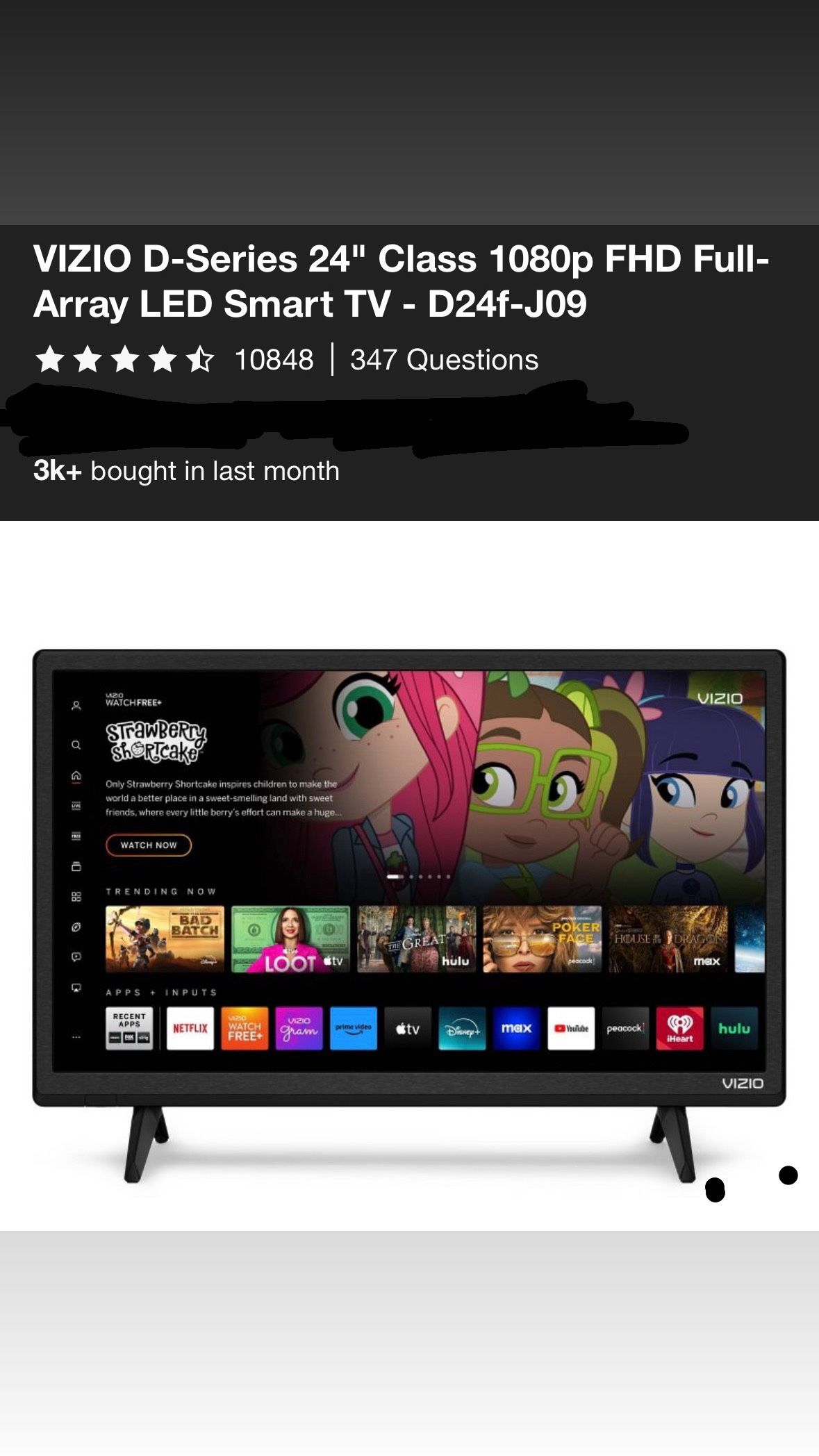 New! Box sealed never opened VIZIO D-Series 24" Class 1080p FHD Full-Array LED Smart TV - D24f-J09 • 1080p High-Definition - Watch TV in crisp, clear 1080p Full HD resolution. • Full Array LED Backlight - Evenly distributed LEDs across the screen's backlight deliver superior light uniformity and picture performance. • VIZIO OS - Instant access to the best selection of apps from top-tier streaming services, and over 300+ free channels on WatchFree+. • Apple AirPlay 2 and Chromecast Built-In - Stream, control, mirror and share your content from your Apple or Android devices directly to the TV. • What's Included - VIZIO Smart TV Remote with batteries, Quick Start Guide and User Manual. • 2 HDMI Ports - High-speed HDMI connectivity offers better video performance as well as Dolby Atmos and DTS:X passthrough for a more immersive audio experience. • V-Gaming Engine - Automatically optimizes picture mode for gaming and makes next-gen console gameplay more responsive with Auto Game Mode, Variable Refresh Rate with AMD FreeSync, D-Series lowest input lag, and newly-added gaming menu. • IQ Picture Processor - Delivers superior picture processing, faster navigation, and quicker load times.