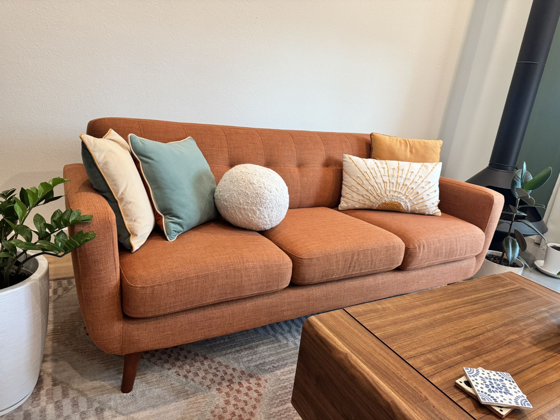 Rust Orange Midcentury Modern 86” Couch