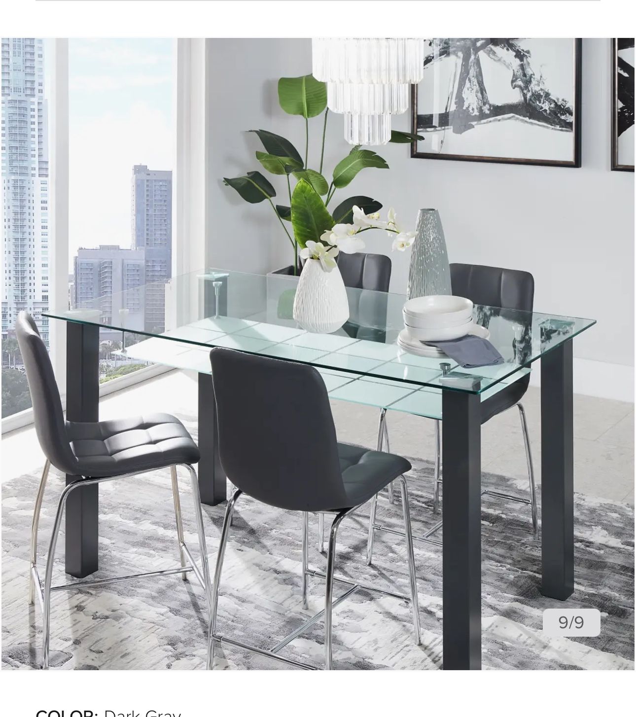 Hi this table is practically new. Does not fit in my apartment . This class doesnt come with chairs as i never bought any but its yours . See pictures for description. City Furniture item. Normally $399