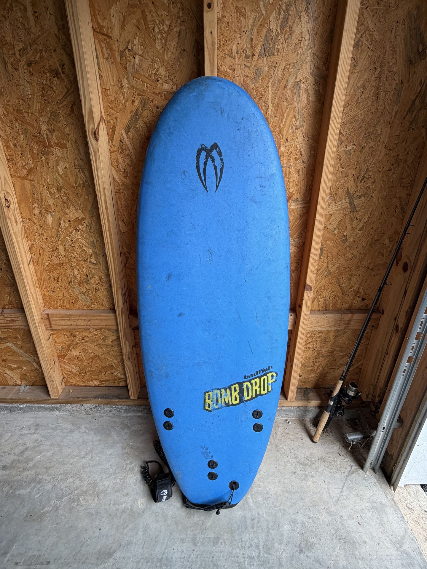 Bad Fish 5’0” Bomb Drop Foam Surfboard. Formal wear and tear. Missing fin and has small crack near missing fin (see photos). Please feel free to ask any questions. Thank you!