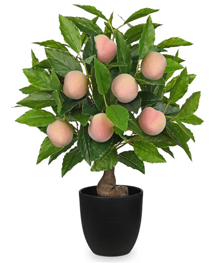 Highly Realistic Decoration Tree: This artificial peach tree features large realistic leaves and high-quality faux peaches. The lifelike leaves showcase visible venations and are paired with 7 eye-catching peach fruits. Their colors closely match real peaches, creating a vibrant and brilliant appearance—far more authentic than other small faux peach trees. Perfect for adding a touch of nature to any space.