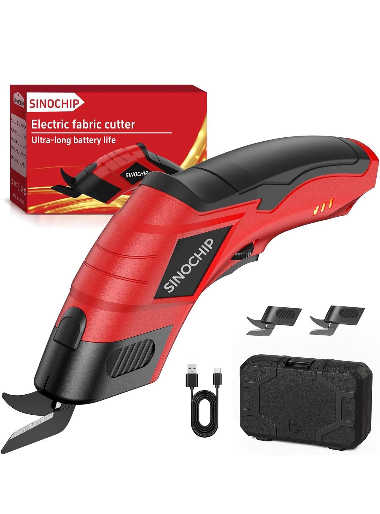 Electric Scissors for Cardboard Cutting, 2000mAh cell 12000RPM High-Power Box Cutter with Dual Blades & Safety Lock Suitable for fabrics, cardboard, plastics, leather, carpets 355