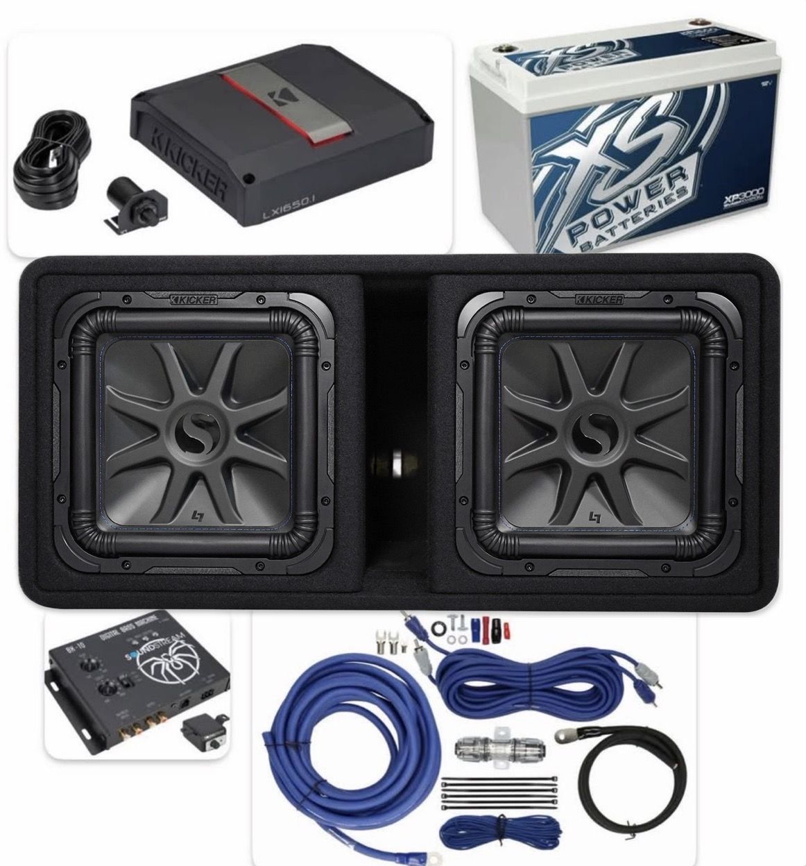 $1800 Firm New Installed 2 12” KICKER L7s subwoofers 3000 watts 1500 rms Ported box Kicker lx series amp With bass knob control Secondary battery Amp kit wires Installed Keywords alpine kenwood kicker pioneer Rockford Memphis mtx jl audio hifonics sundown audio skar audio ds18