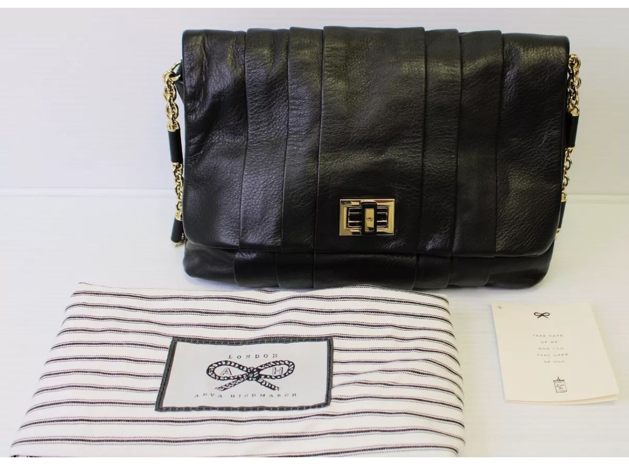 Anya Hindmarch Women`s Shoulder Leather Black Chain Strap & Turnlock Bag