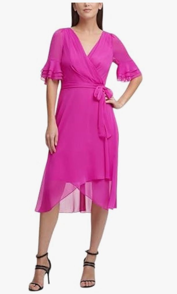 BRAND NEW Midi, waist belt fit ant flare silhouette. Low maintenance travel piece. Color fuchsia / raspberry