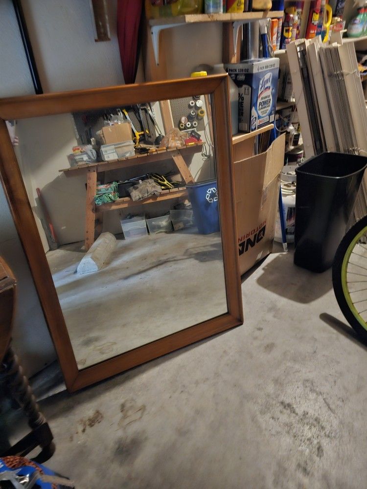 Heavy wooden mirror. Measures 32 x 42". Best offer an it is yours.