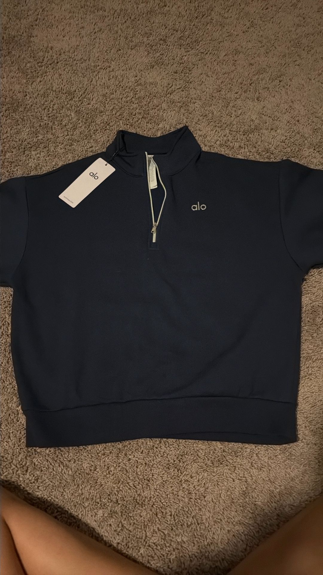 brand new never worn navy blue quart zip size medium alo can deliver no fee! not firm on price but no low ballers.