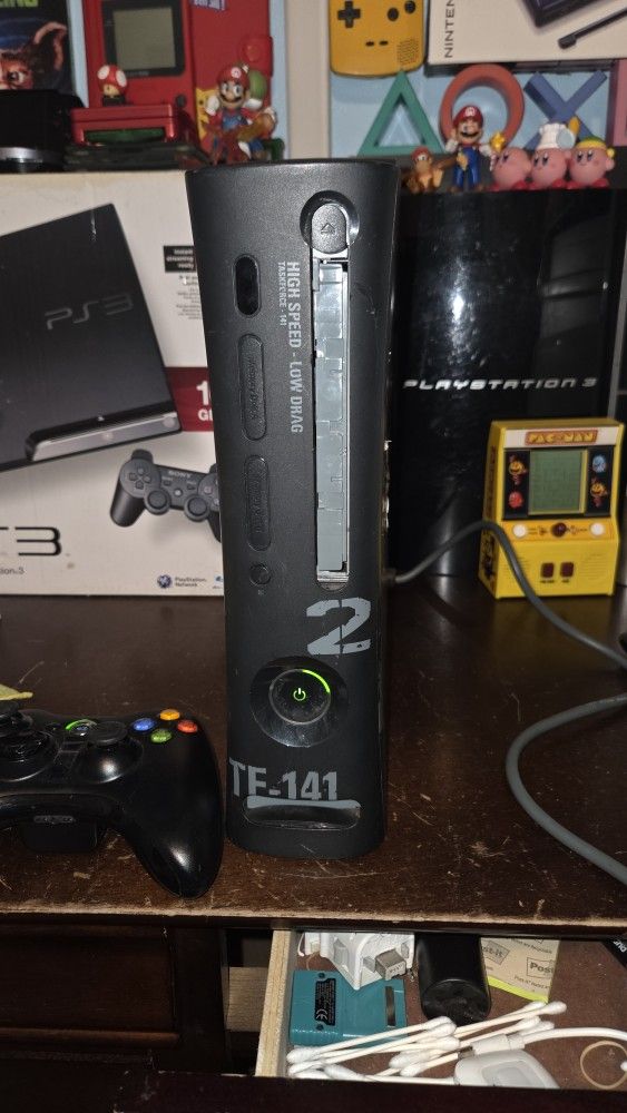 XBOX 360 Modern Warfare 2 Edition (no hard drive or power adapter) Disc drive not working and missing front plate or disc drive Console powers on great Console only As is