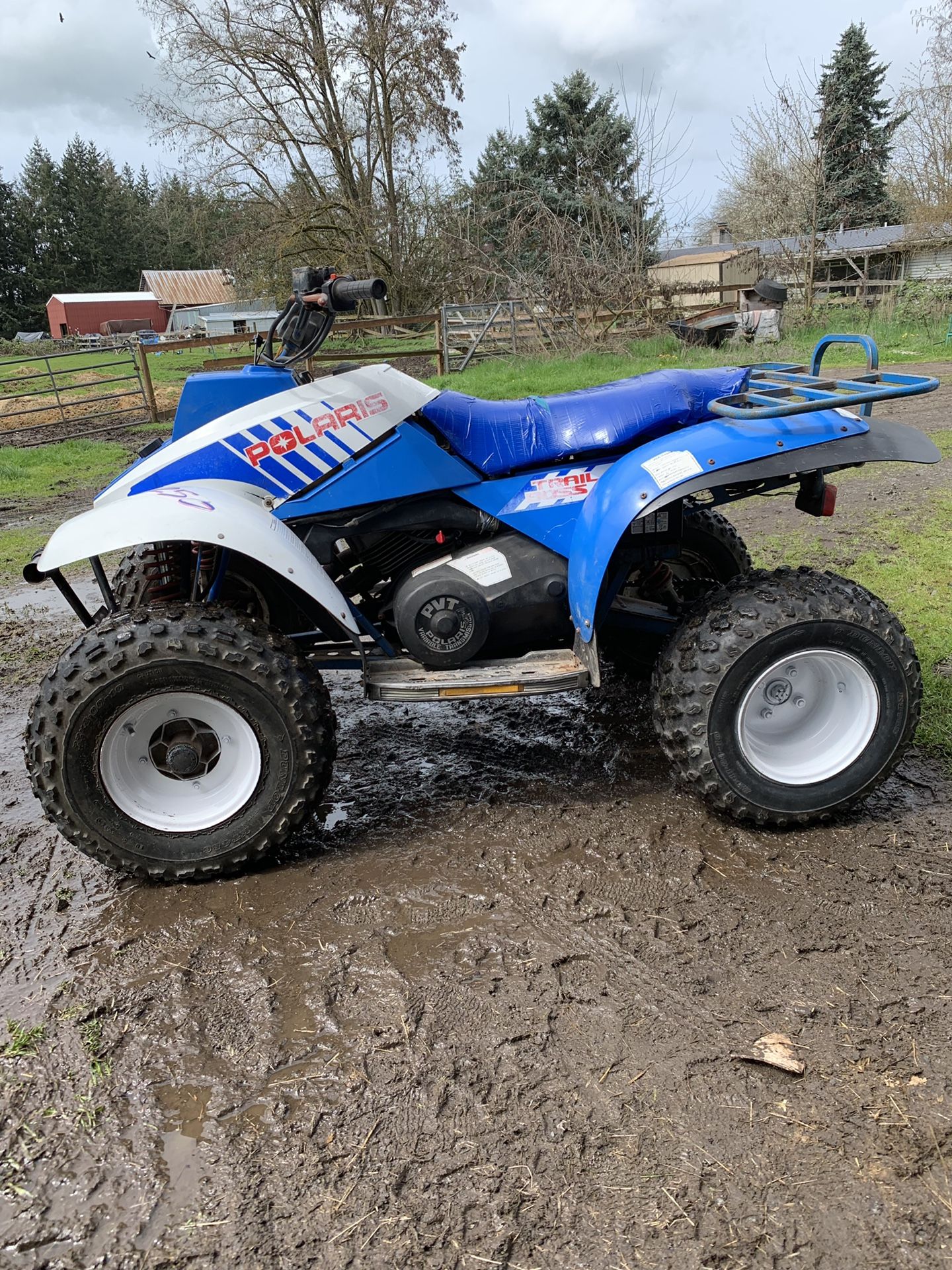 For Sale or Trade 1990 Polaris Trail Boss 2-stroke Forward and reverse Good tires Electric or pull start Has been used but well taken care of Has lots of life left in it Willing to trade this fun machine for 4 stroke work quad Quality saddle Driving horse/pony Livestock panels Driveway gravel (you deliver) Boulders (you deliver) Tell me what you have, partial or full trade depending on item