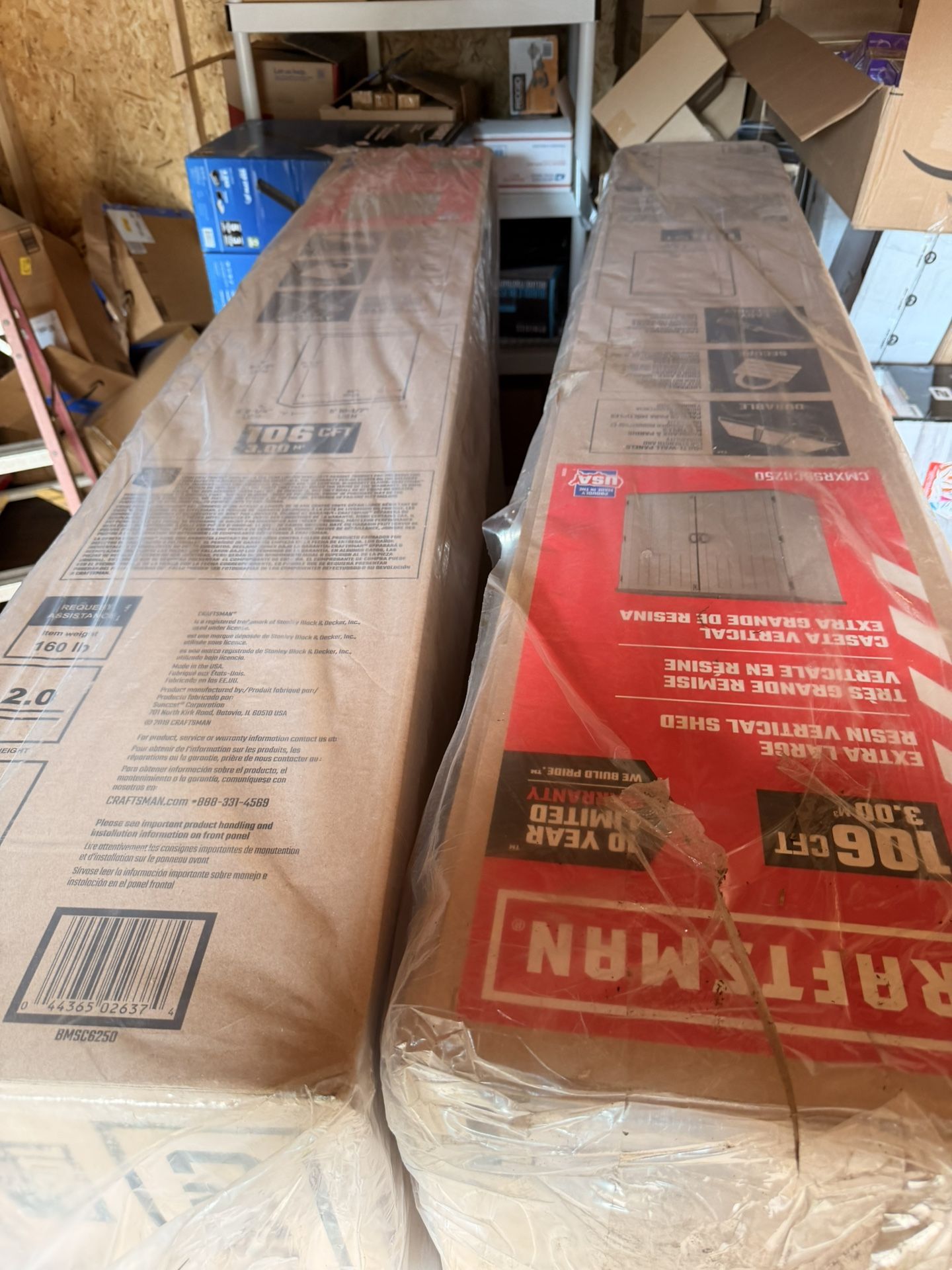 I have 2 of these storages available brand new in the box ready to be assembled. Asking $350 for each shed located on west side of delivery. I do not deliver for free. HABLO ESPANOL SI UNA DUDA