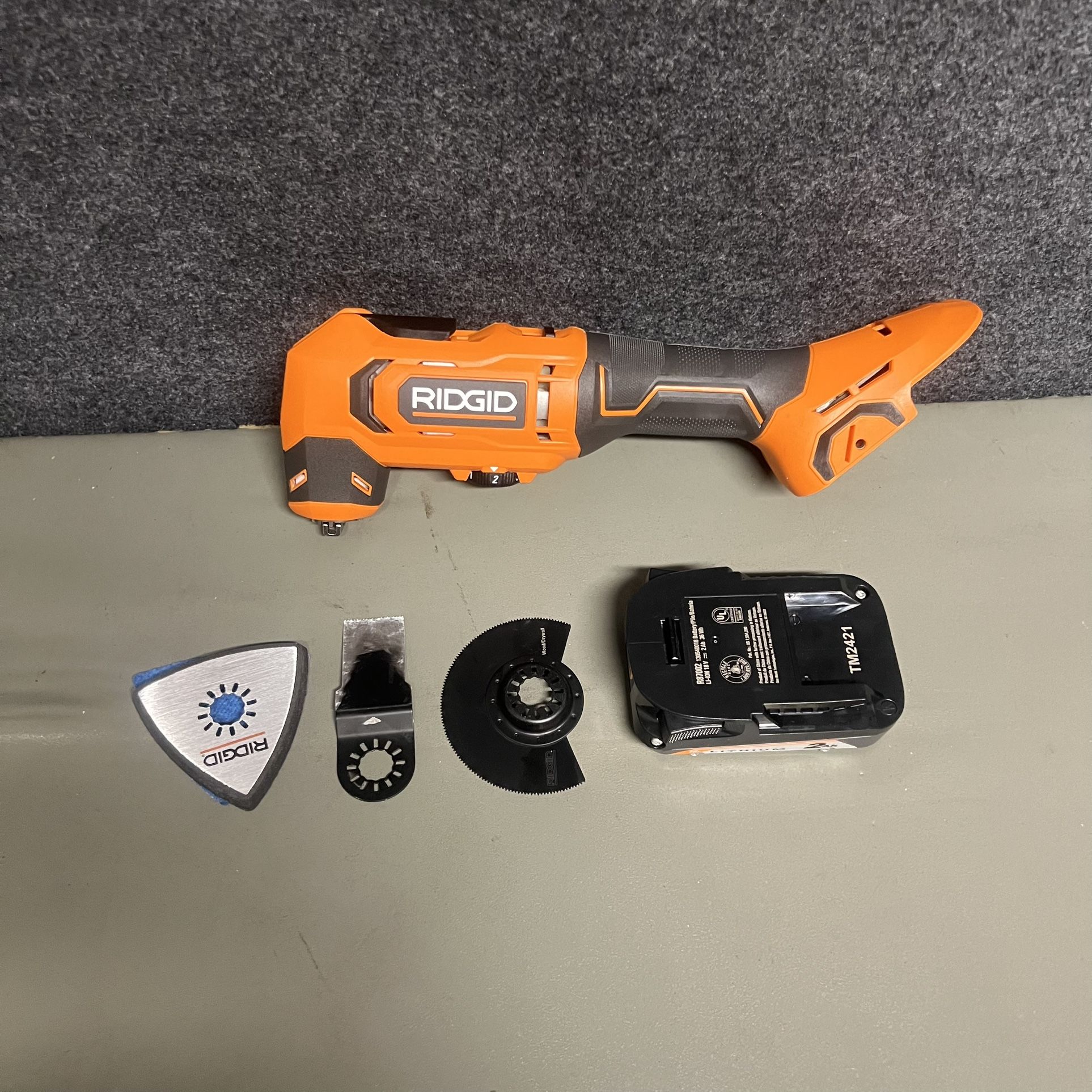 RIDGID 18V Cordless Oscillating Multi-Tool with 2.0 Ah Lithium-lon Battery Slightly used.
