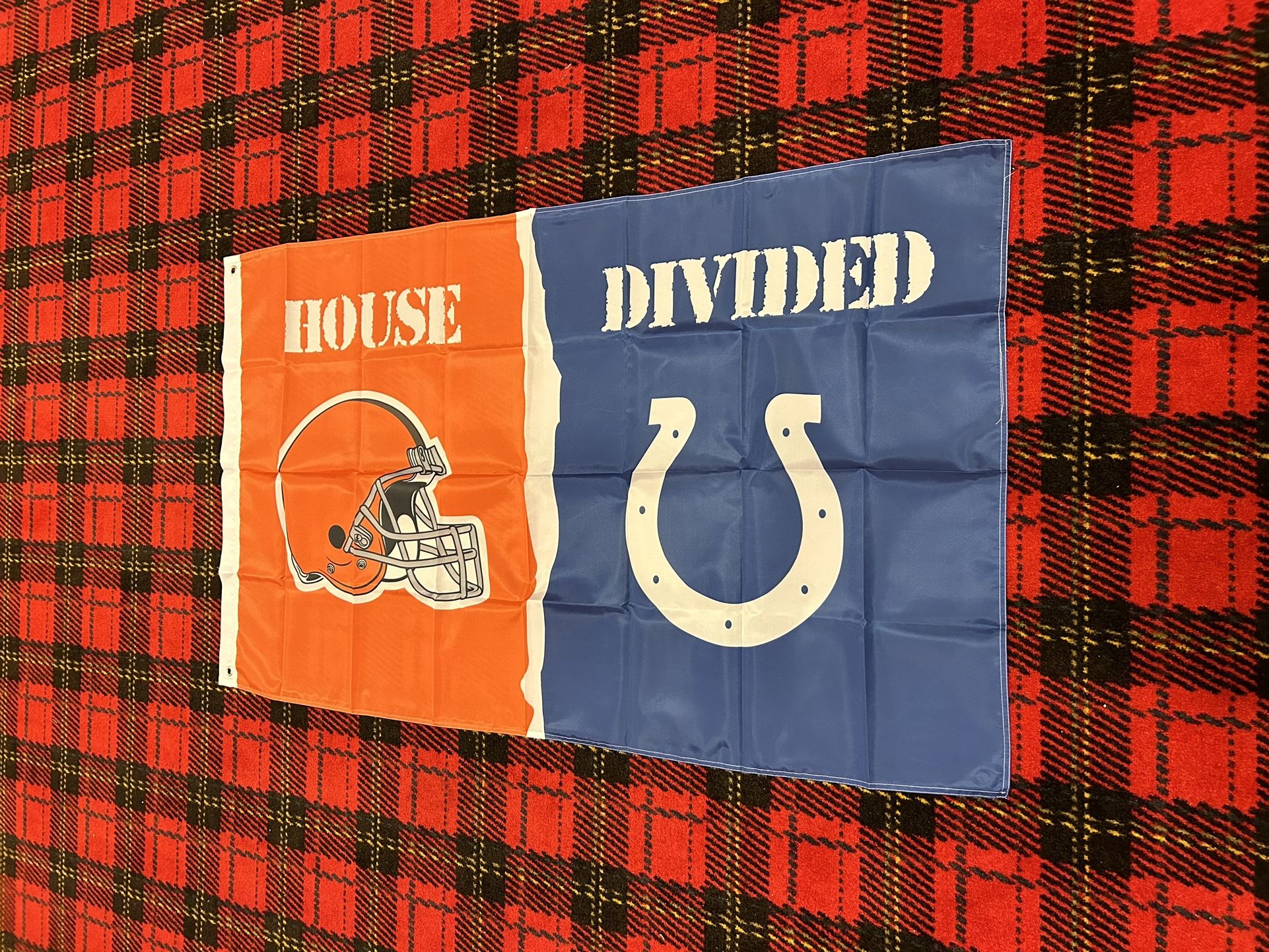 Brand new 3 foot by 5 foot. You can hang it up inside or outside. Would make a great addition to any man cave. Cleveland Browns banner flag Indianapolis Colts banner flag