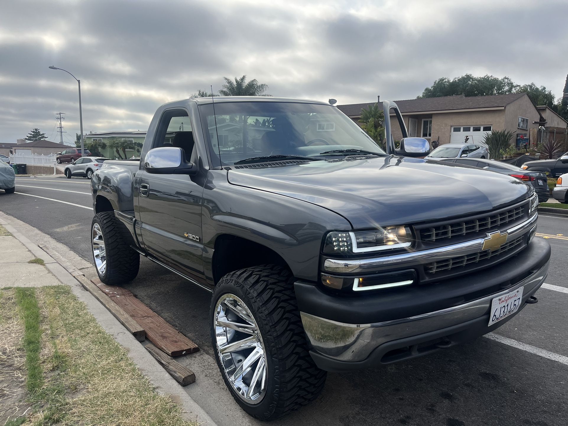 I got a clean single cab 1999 z71 4x4 brand new paint and brand new tires and rims π by Off Road monster with some Rolling Big power tires π― % new β¦ 22 inch rims chromed out super shiny .. motor and transmission π― β¦ the new engine has 56,000 k miles and tranny has been rebuilt 5.3l v8 vortec dash reads 245,000 miles β¦. maintenance is kept up to date it is daily driven β¦ with smog in hand β¦ tags good until September 2025 .. asking 15,000 $ or best offer / 15,000$ o mejor offerta .. clean title / titulo limpio !!!has had only one owner !