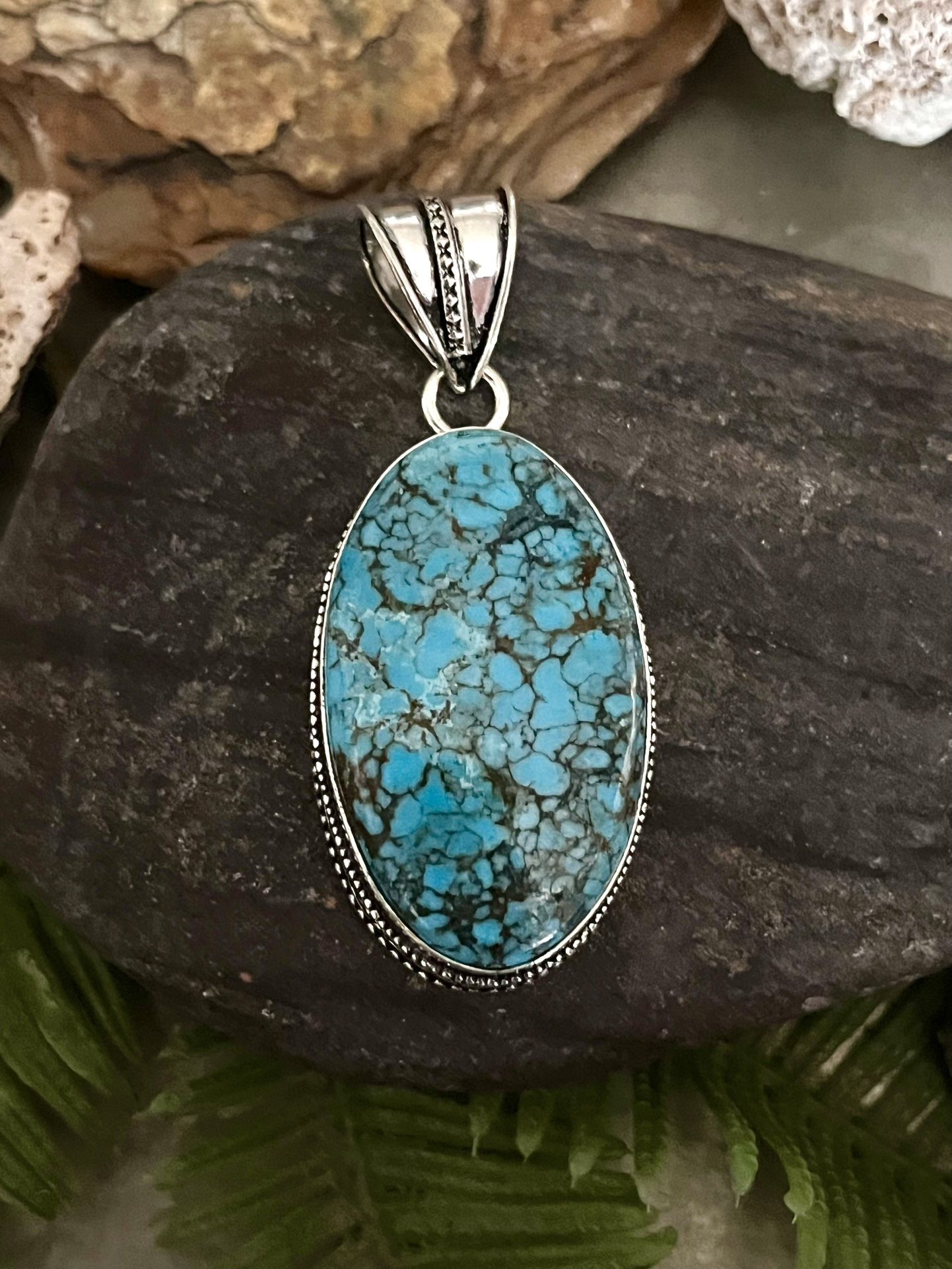 Large Natural Turquoise Gemstone Sterling Silver Pendant#49