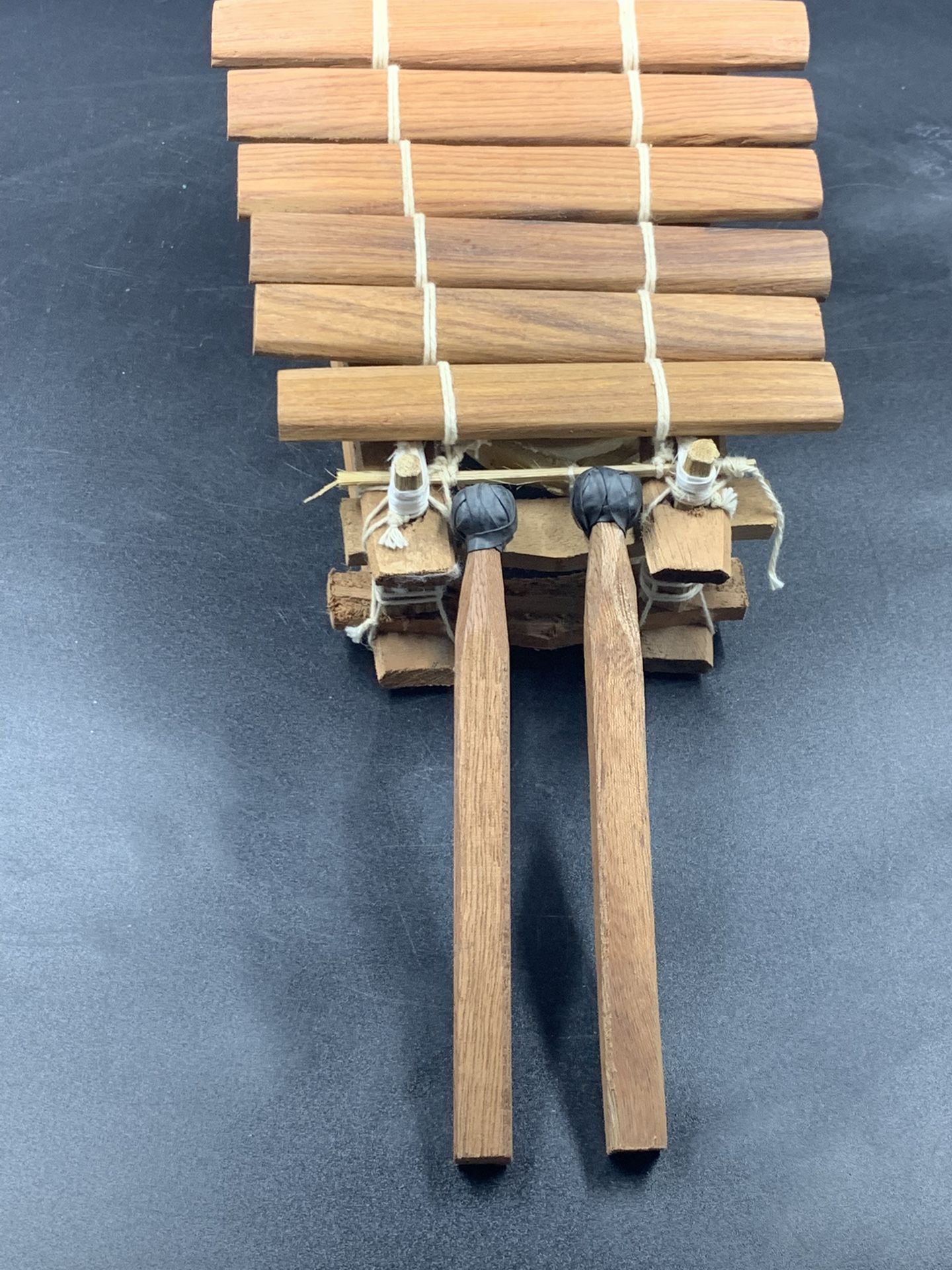 Hand Made Mahogany Six Balaphone From Mali. It Is About 10” By 7” In Size. It Also Includes Two Playing Sticks.