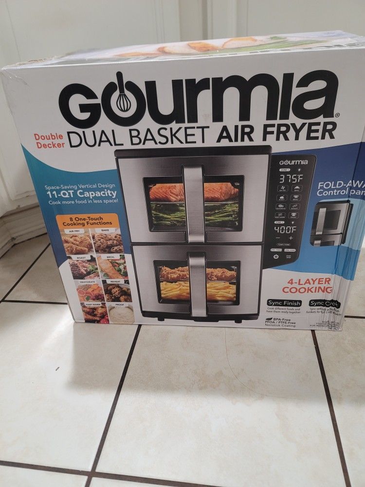 Gourmia 11-QT Dual Basquet Air Fryer with Smart Finish & 4- Layer Cooking
