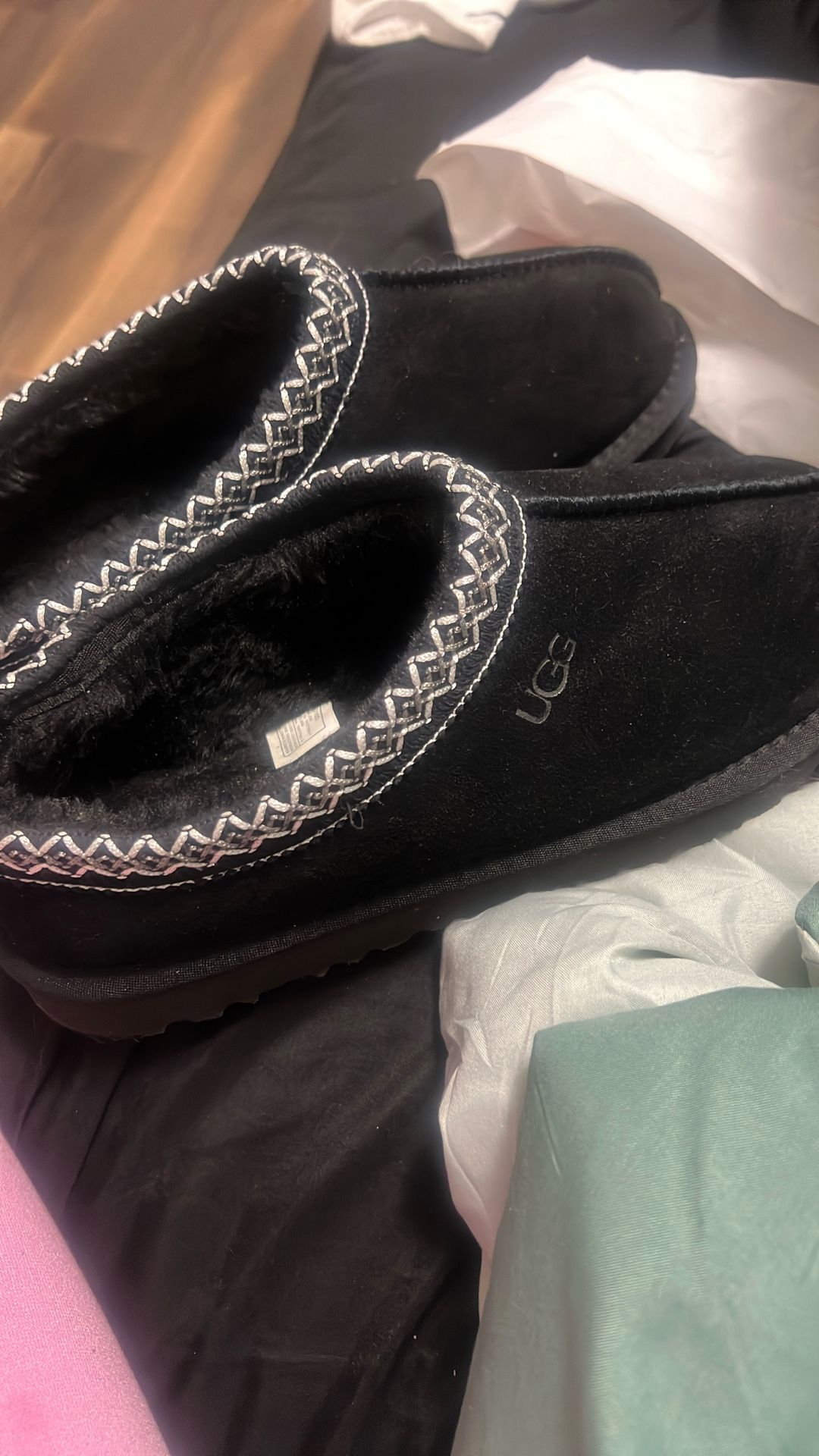 these uggs slides has never been worn i’m only selling them because i got the wrong size on accident. they are a size 10 in men . you do have to come to me to get them , im located downtown cleveland area