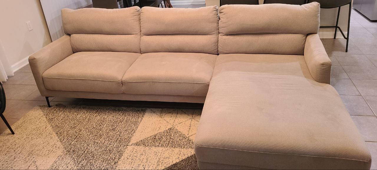 Gray Fabric Sectional Sofa 100”. Includes The Rug Shown In De Picture.