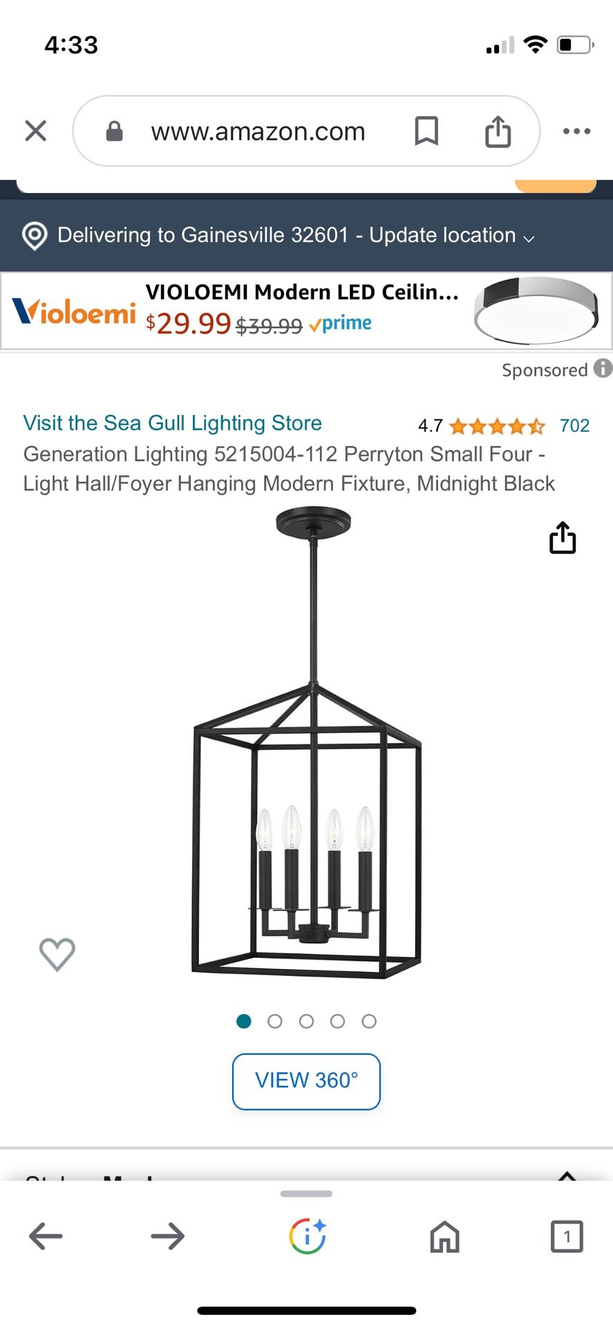 Generation Lighting - Light Hall/Foyer /kitchen/bath Hanging Modern Fixture, Midnight Black