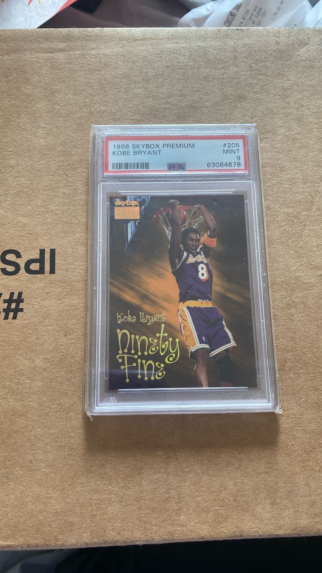 1998 Skybox Premium Kobe Bryant card. PSA graded 9.