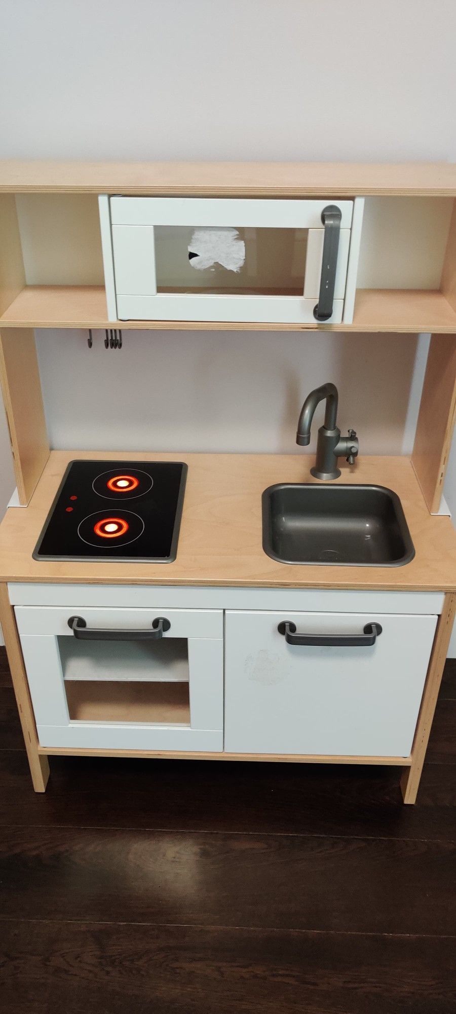 Ikea kids play kitchen along with stainless steel cookery items, target tea set, quality play food items - pizza, sushi, vegetables and more! Come as one unit. $100 (obo) Cash and carry only West Town area