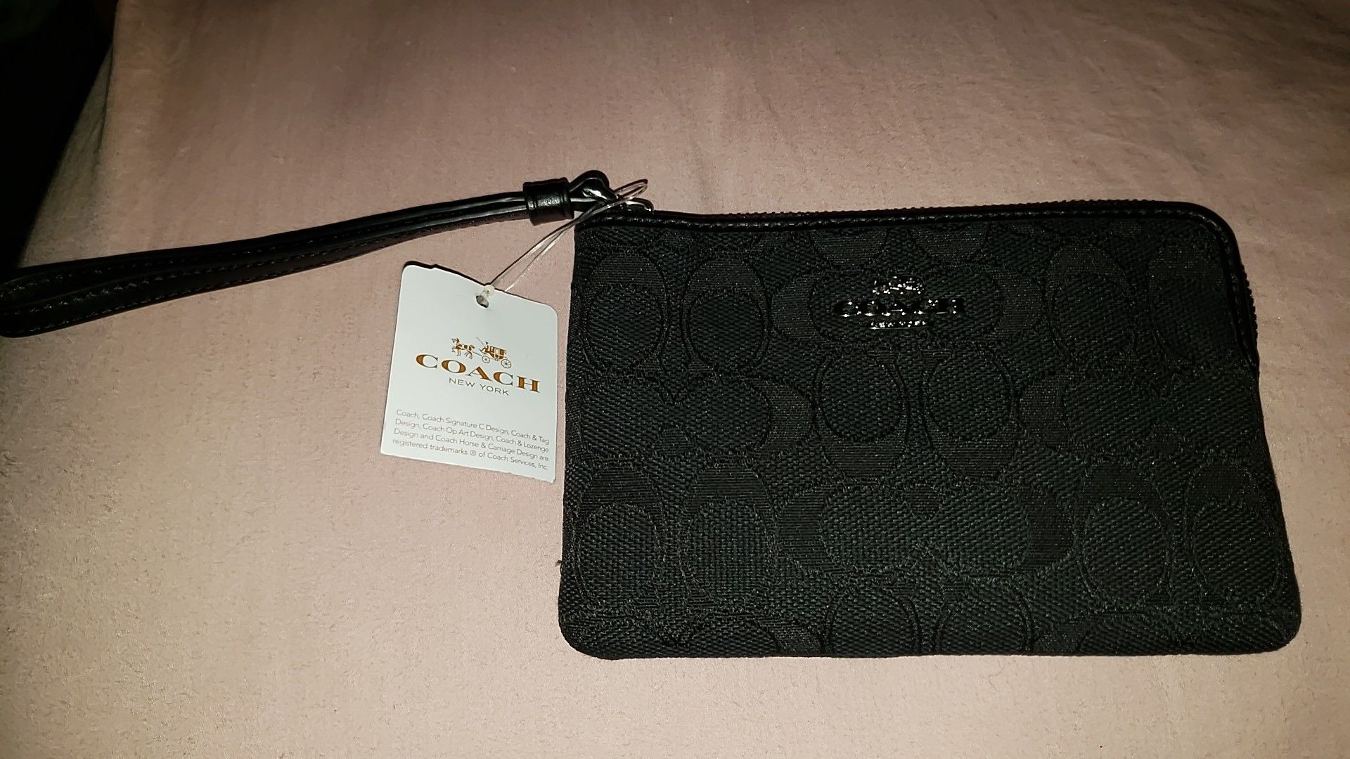 Brand new Coach black logo WRISTLET. Great gift. With tags. 3 card slots inside. Zipper top.