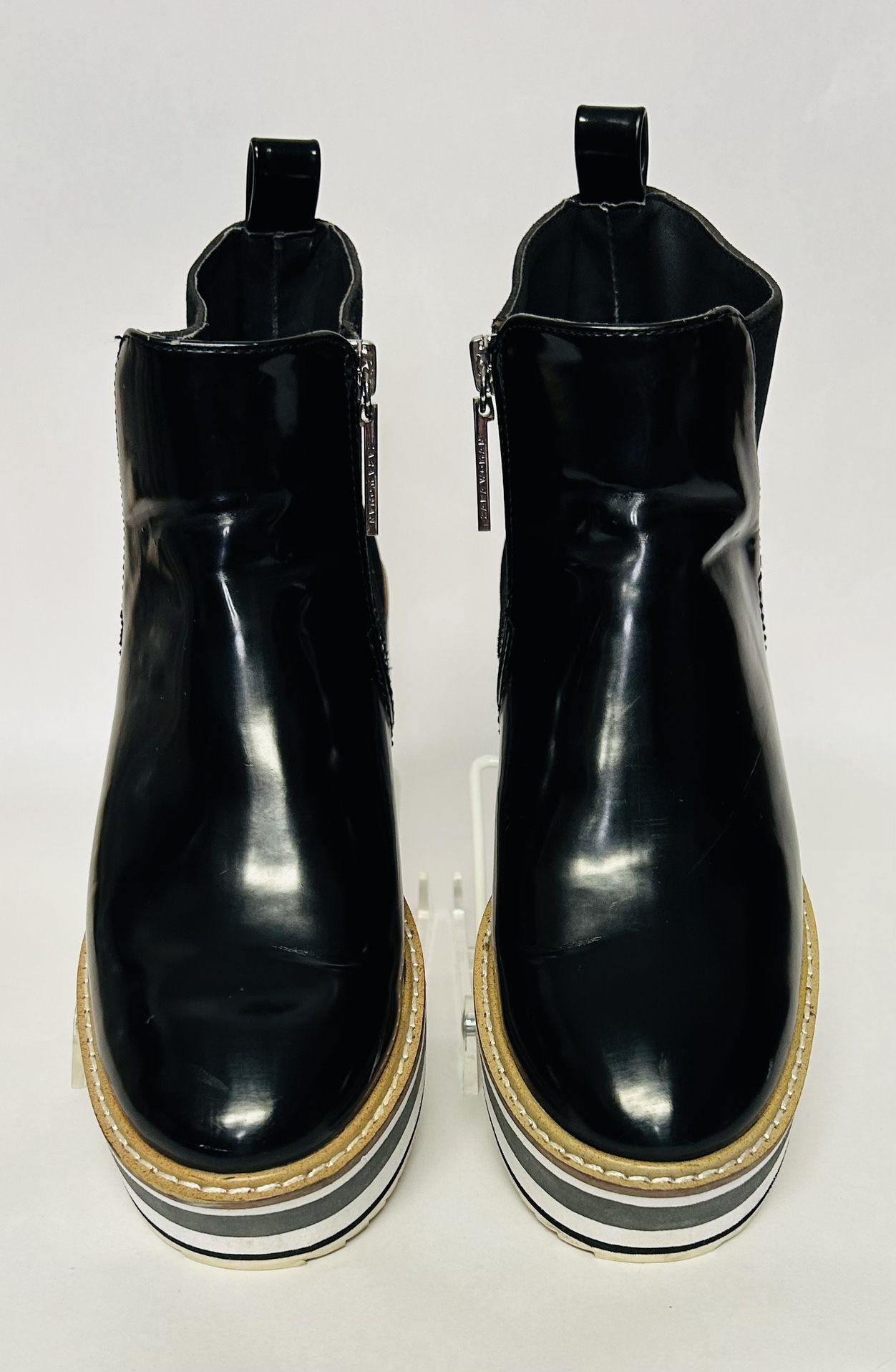 Zara Women Basic Black Patent Leather Wedge Zipper Ankle Boot Size 7