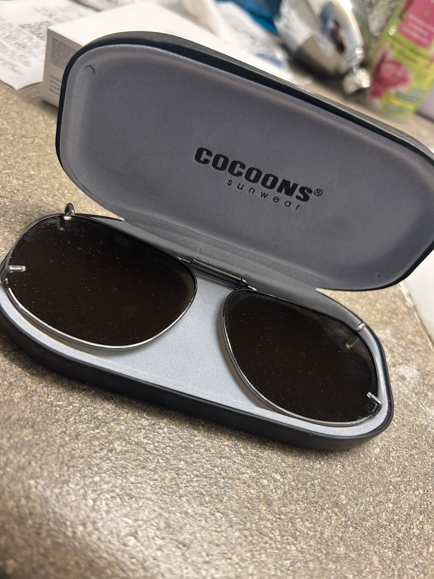 Clip on shades for glasses , expand to fit any glasses They work very well looked like I had ray bans whenever I used to wear glasses. I wear contacts now so no longer need them