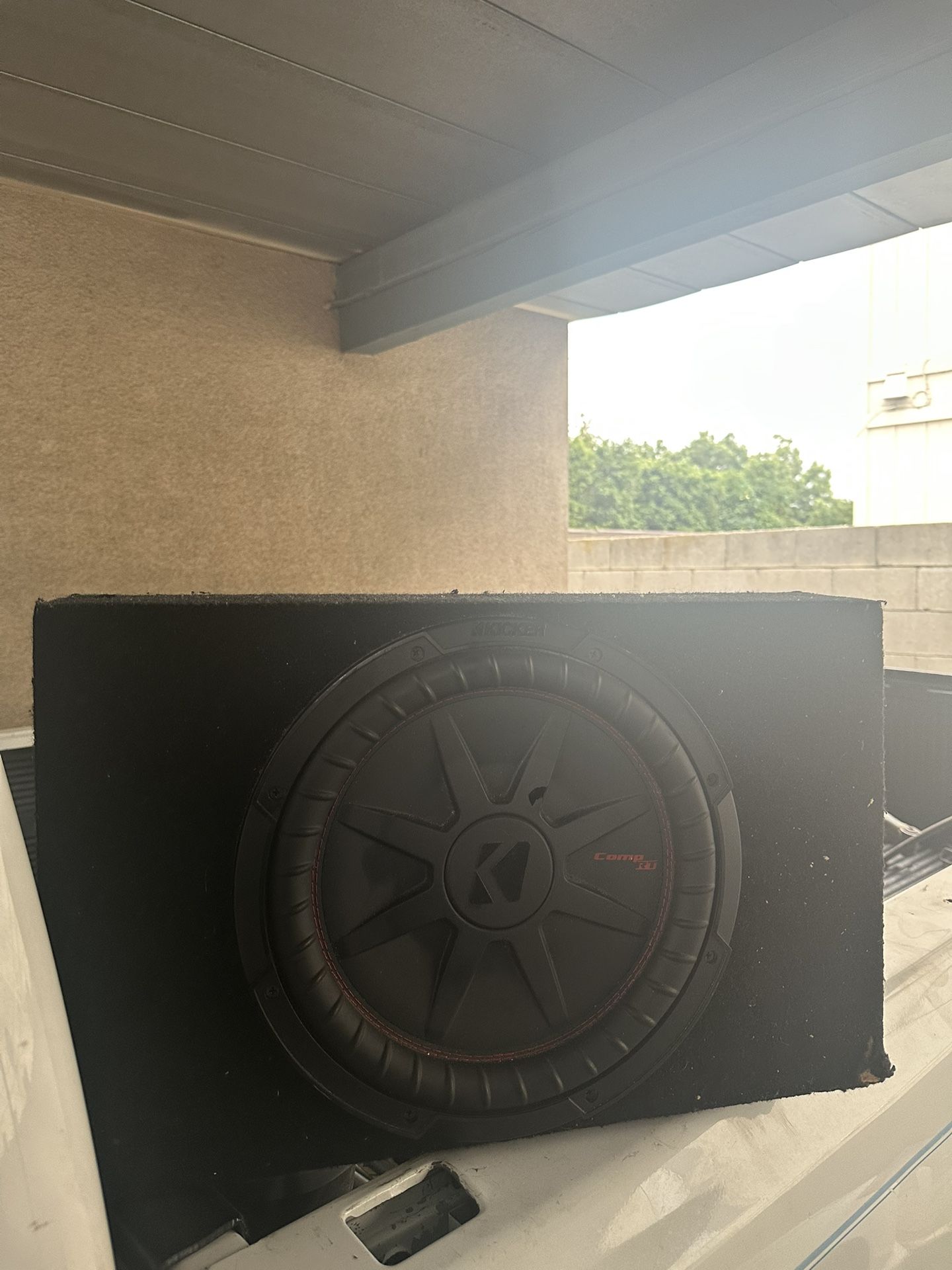 12” kicker comp with box perfect for any car . Originally cost me almost 300$ . Has small flaw but nothing major still hits hard u can test with your own vehicle if you like. Open to offers. Se habla español
