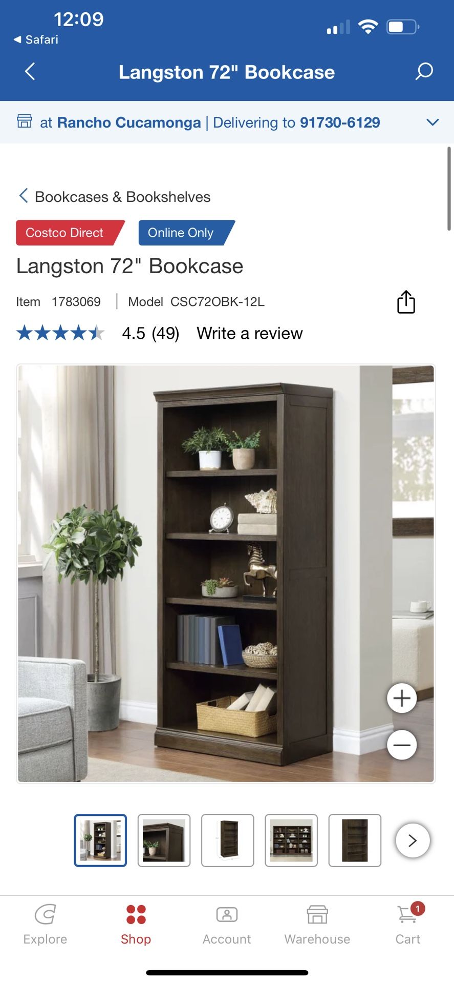 The Langston 72" Bookcase can turn any wall into a custom library, with two, three or more bookcases placed side by side. Its bold wood finish and wire brush distressed finish make it a real head-turner. Three adjustable shelves and one fixed shelf offers the storage you need for all your reading or study materials. Poplar wood offers the solid construction you can count on. Includes: 1 Bookcase Features: Poplar solids with birch veneers Bunching crown and side molding design Hand-applied, multi-step finish 3 adjustable shelves, 1 fixed shelf Hardware included to attach multiple units Assembly required Made in: Vietnam Dimensions & Weight: 32" L x 17.5" W x 72.2" H; Weight: 103.6 lbs.