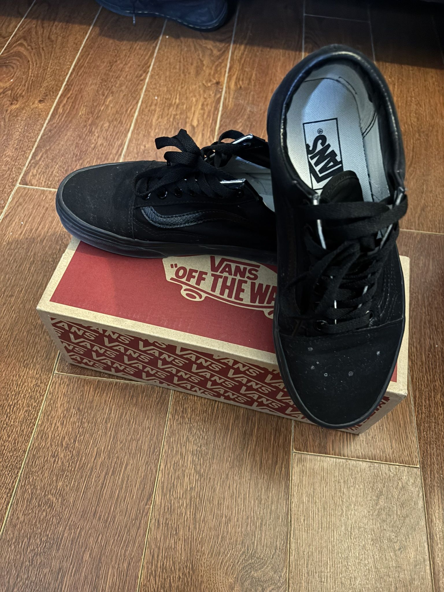 All back old skool vans. One shoe is dirty and I am unable to wipe it clean.