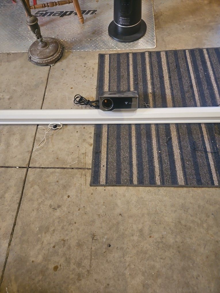 8 foot by 8 foot screen and projector..used once ..bought a giant TV lol