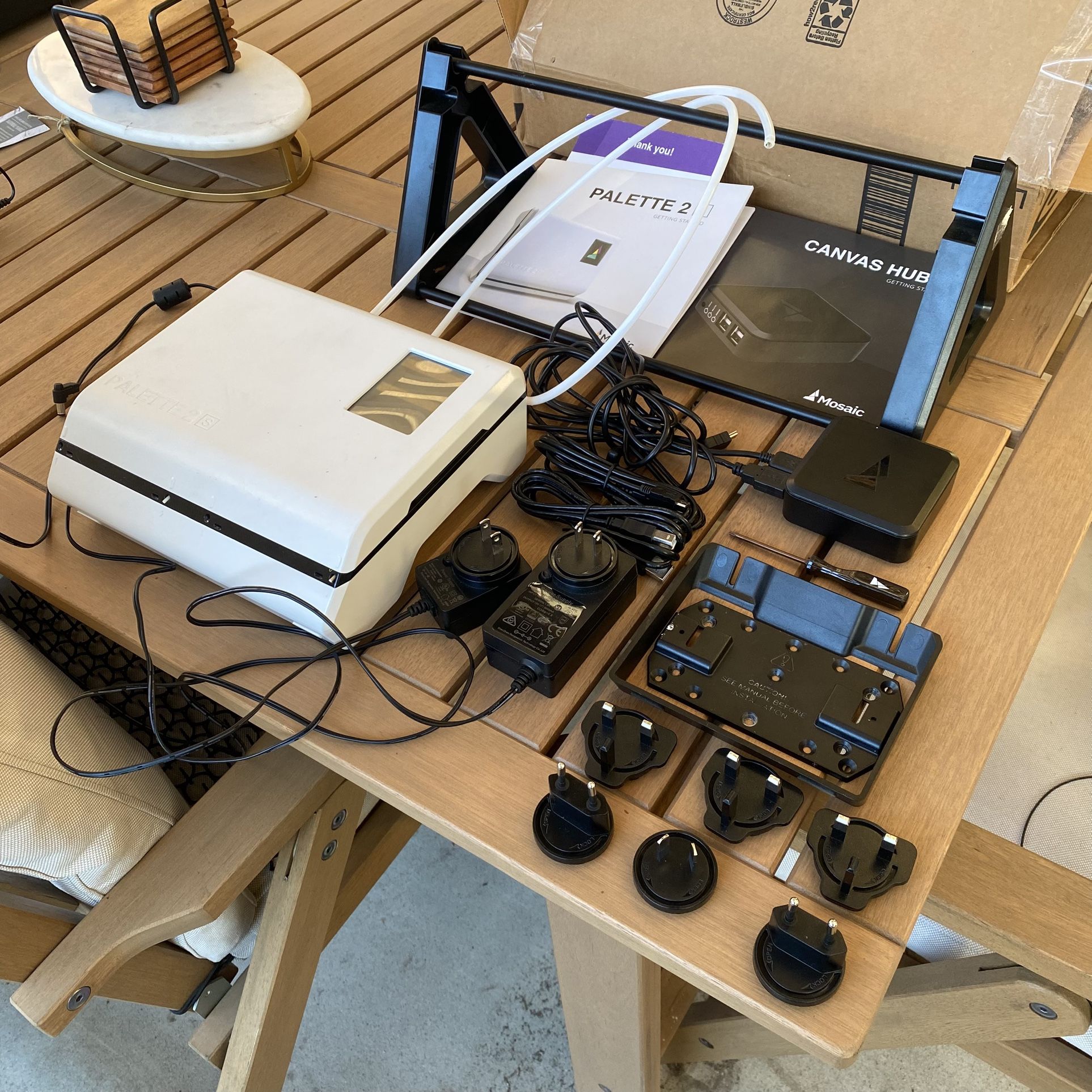 Paid more than $600 when this came out. Take everything for $200. To pair with your 3D printer so you can print with up to 4 colors Can also be used to splice / join filament together. The black hub S module is normally sold separately but will include it here.