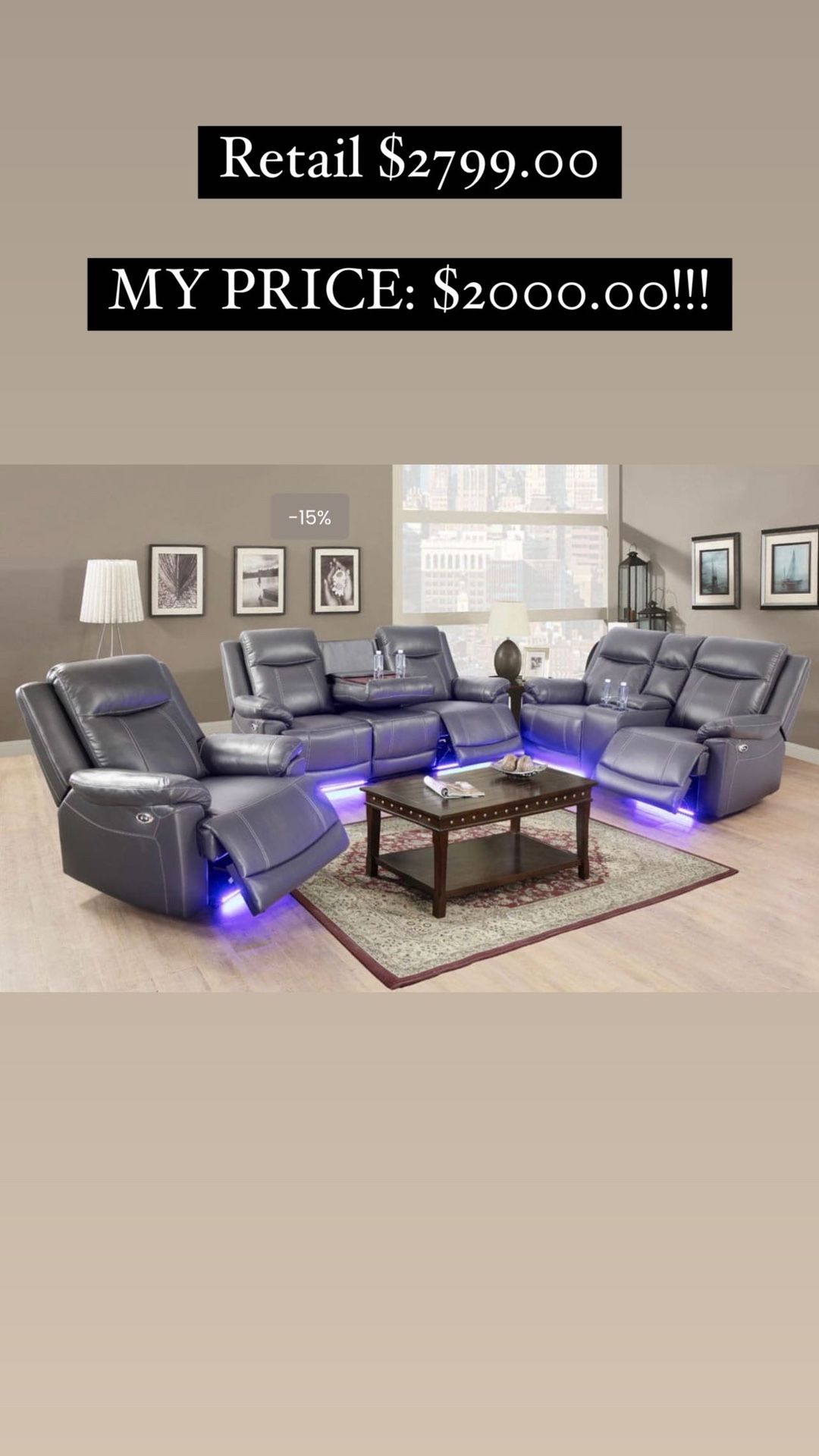 Brand new everything still in packaging this is display picture of the set Sofa and love seat and chair all included Delivery to all areas