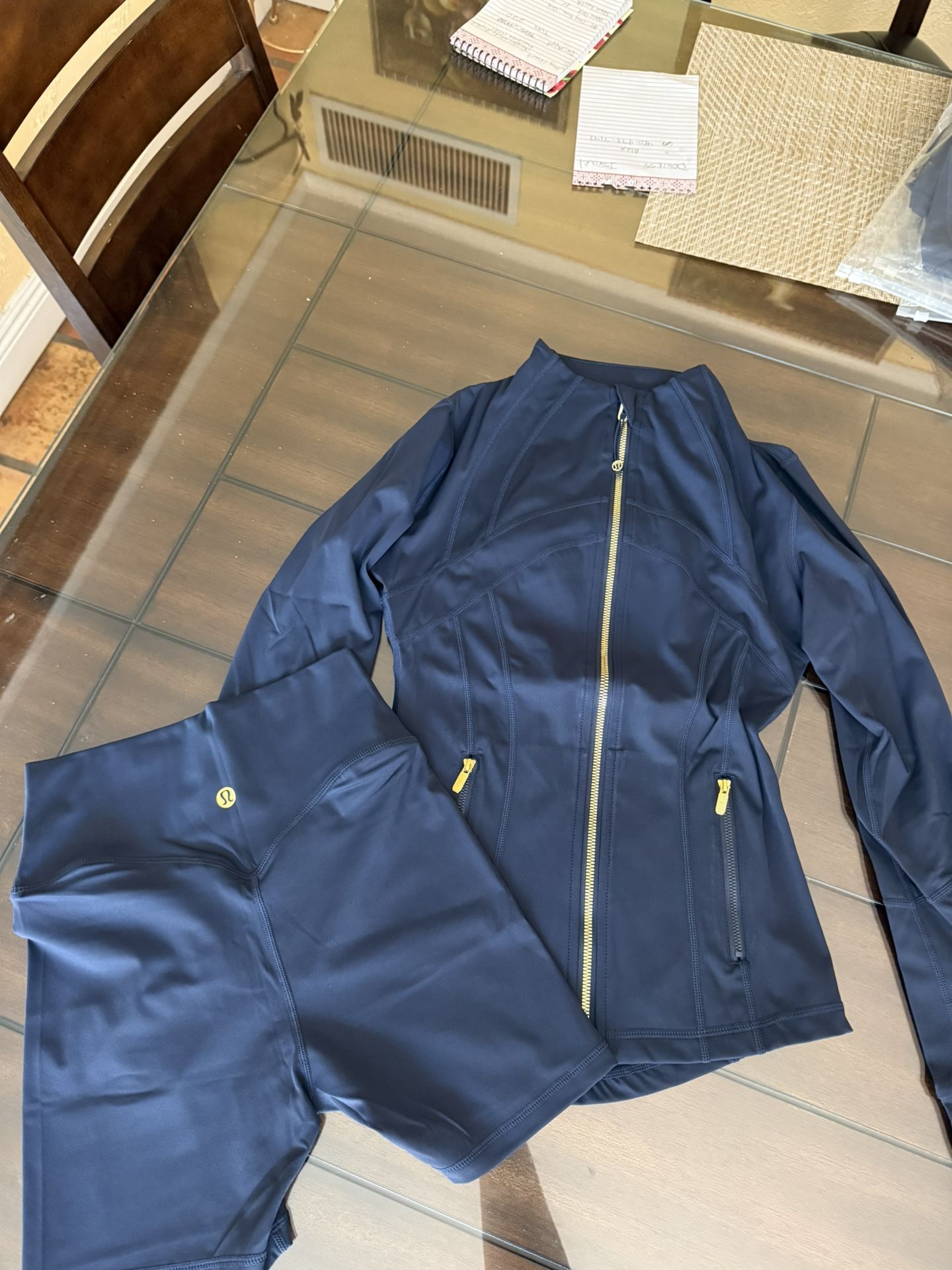 Navy Blue Lululemon Set With Gold Zipped Comes With Jacket And Shorts Have Size M (4)