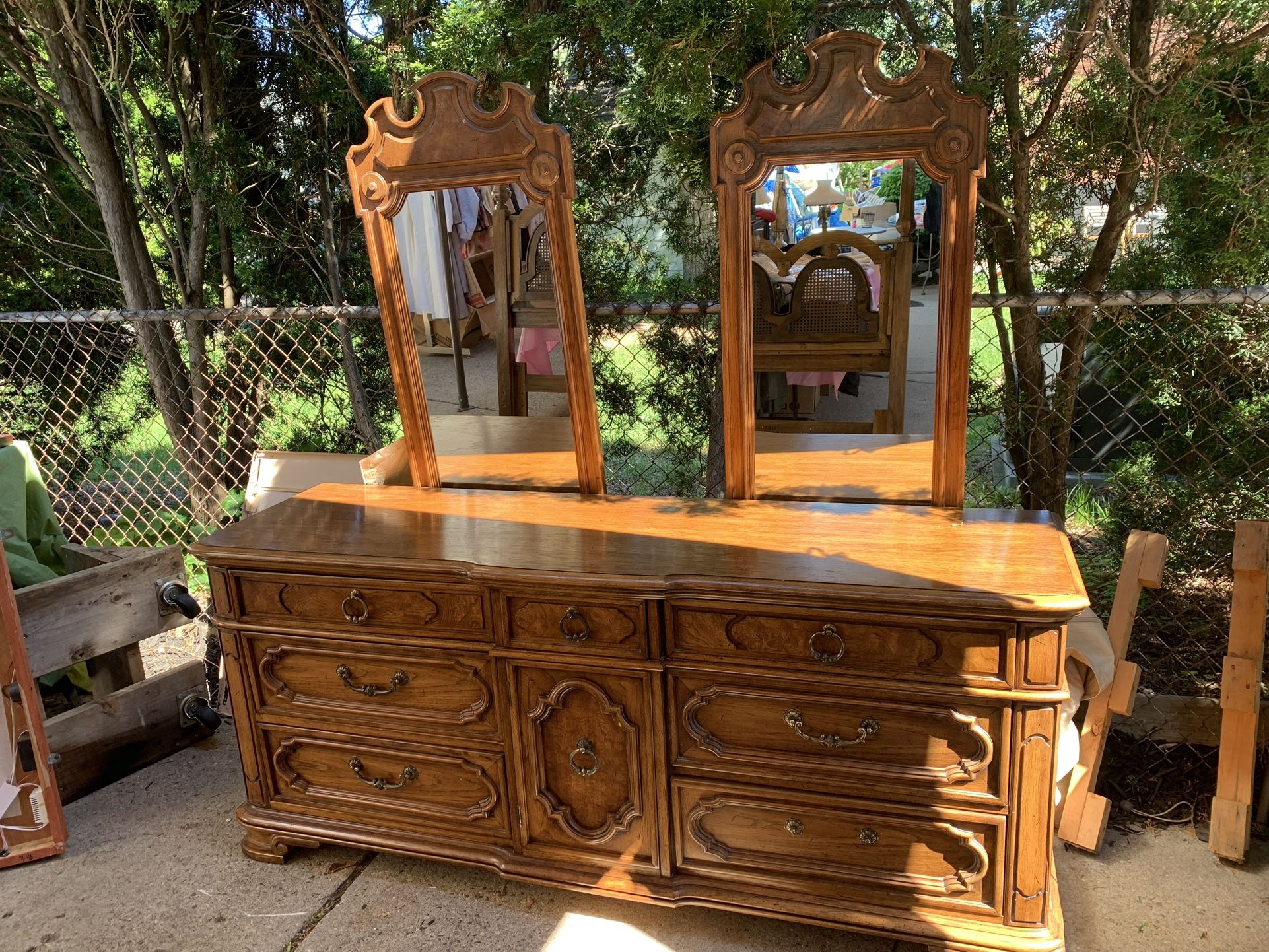 Smoke and pet-free- Burlwood - headboard perfect- dresser needs handle reattached. See photos