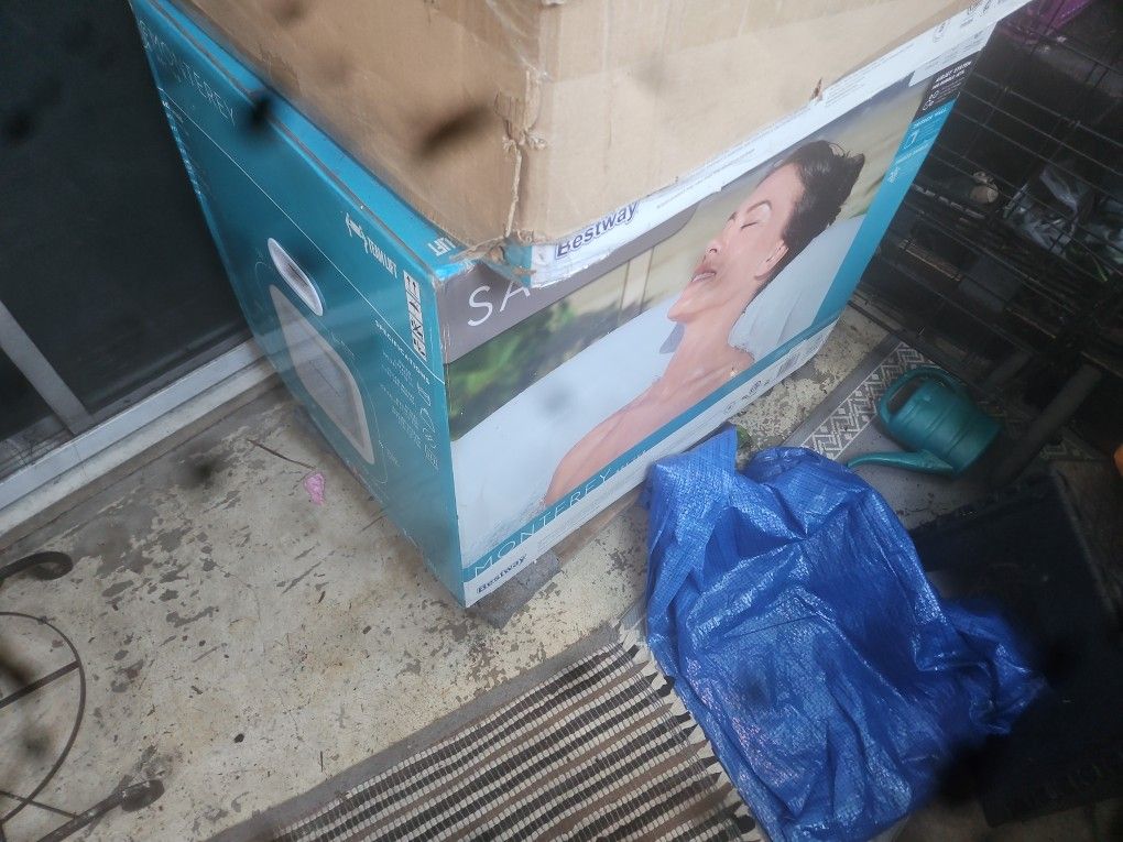 Includes: 1. Portable hot tub 2. Cover 3. Filter Pump 4. Filter Cartridge 5. Chemeconnect Chlorine dispenser 6. Repair Patch 7. Drain Pipe