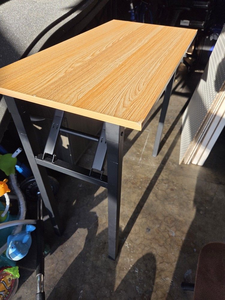 Beautiful piece, very sturdy! Ready to be used as a small desk or for your BBQs outside
