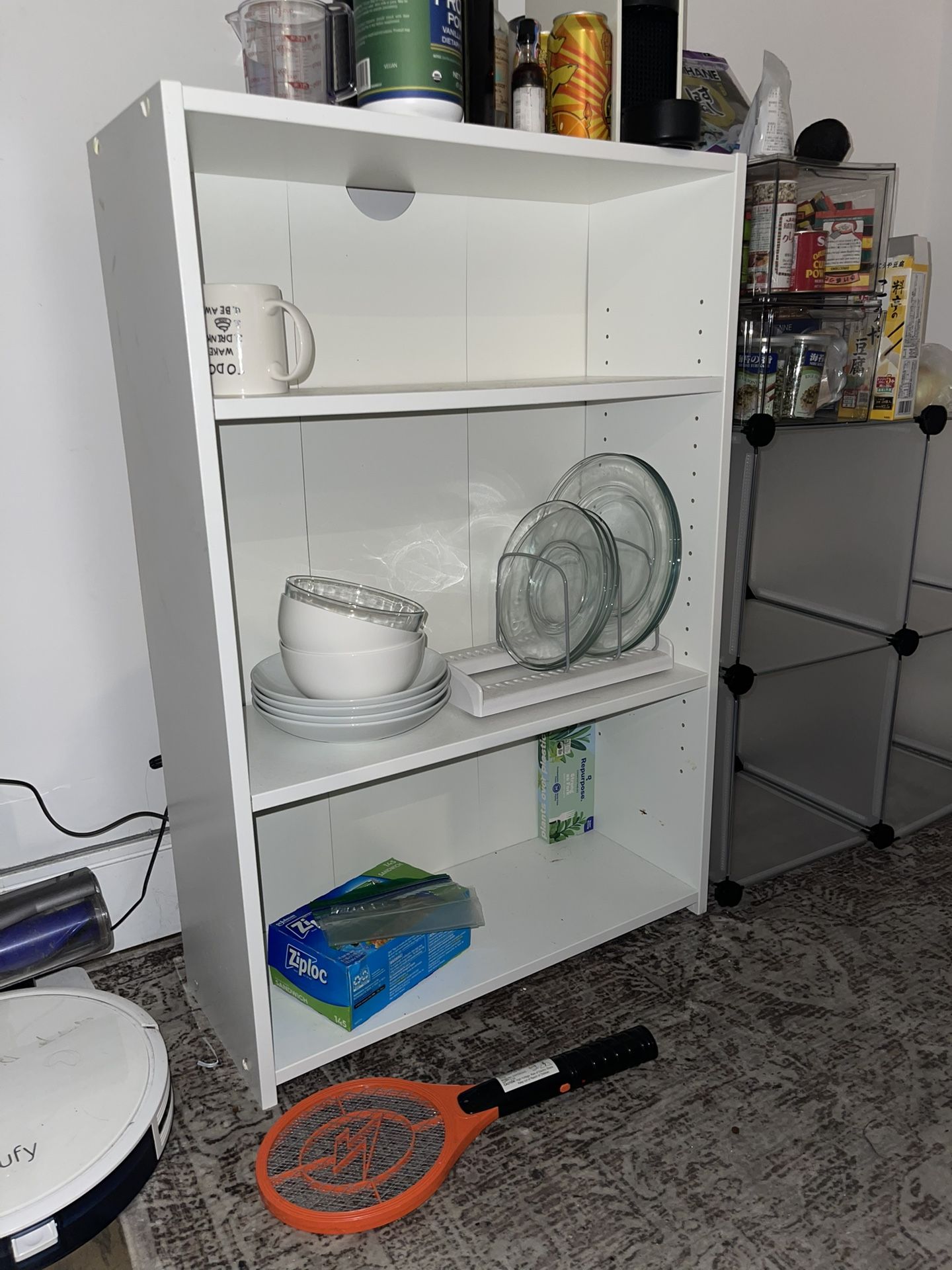 Kitchen rack And Kitchen Ware, White Shelf, Dining Table
