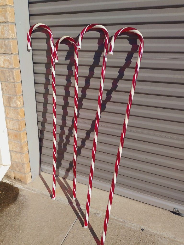 PORCH PICKUP IN CARROLLTON and PRICE IS FIRM. Set of four candy cane holiday decor set they stand 5 ft tall