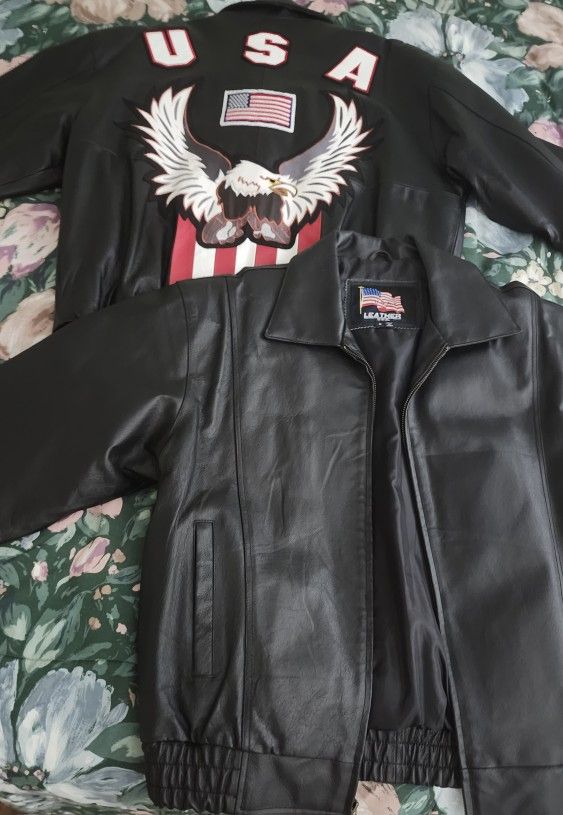 2 Matching USA Leather Jackets. 1 Small. 1 Large.