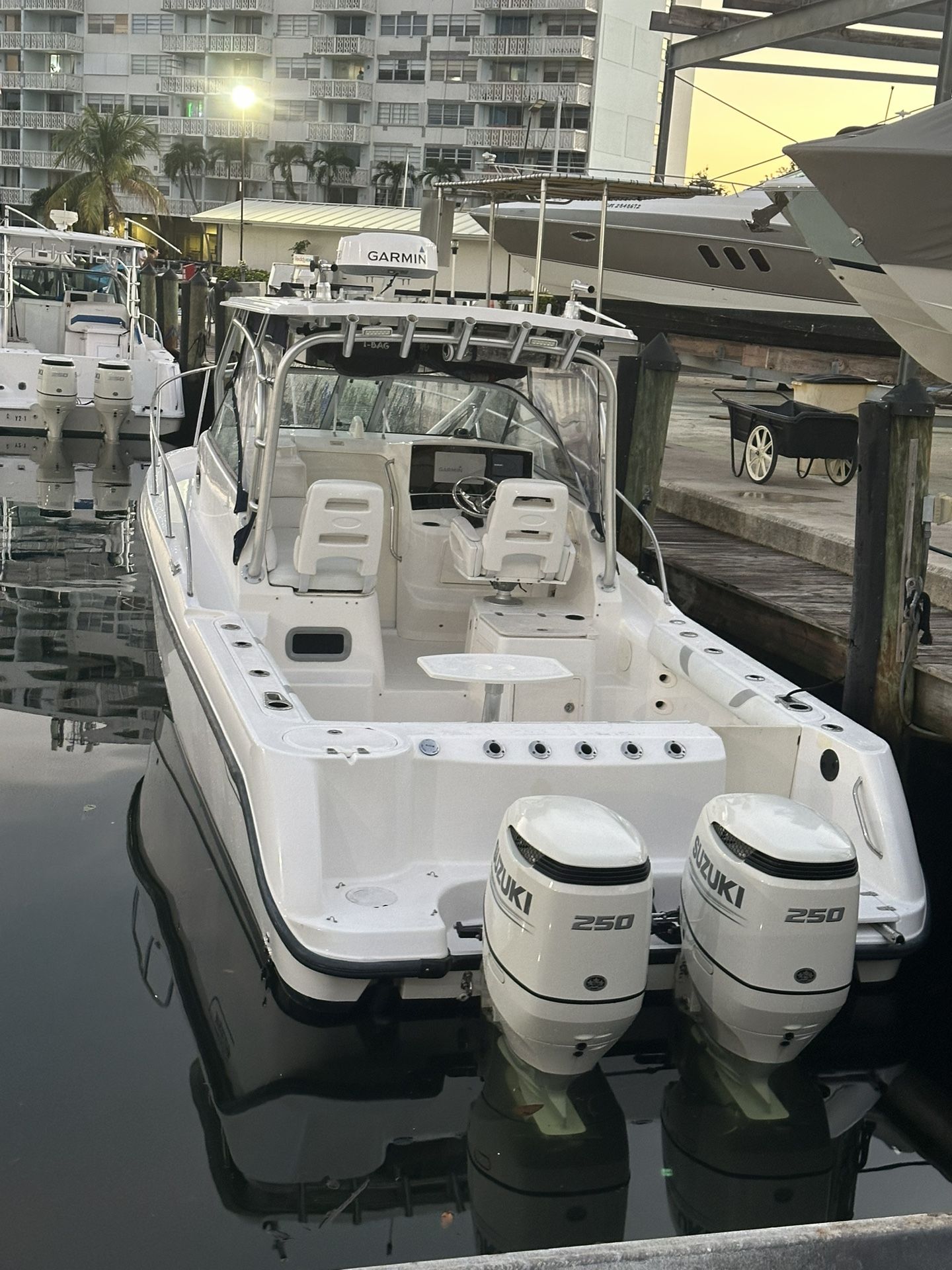 Boston Whaler Conquest (contact info removed) Motores: 2 x Suzuki 250 HP (2020) – 500 HP total Horas: solo 265 h cada uno Barco en perfecto estado, impecable. ¡Listo para disfrutar!
