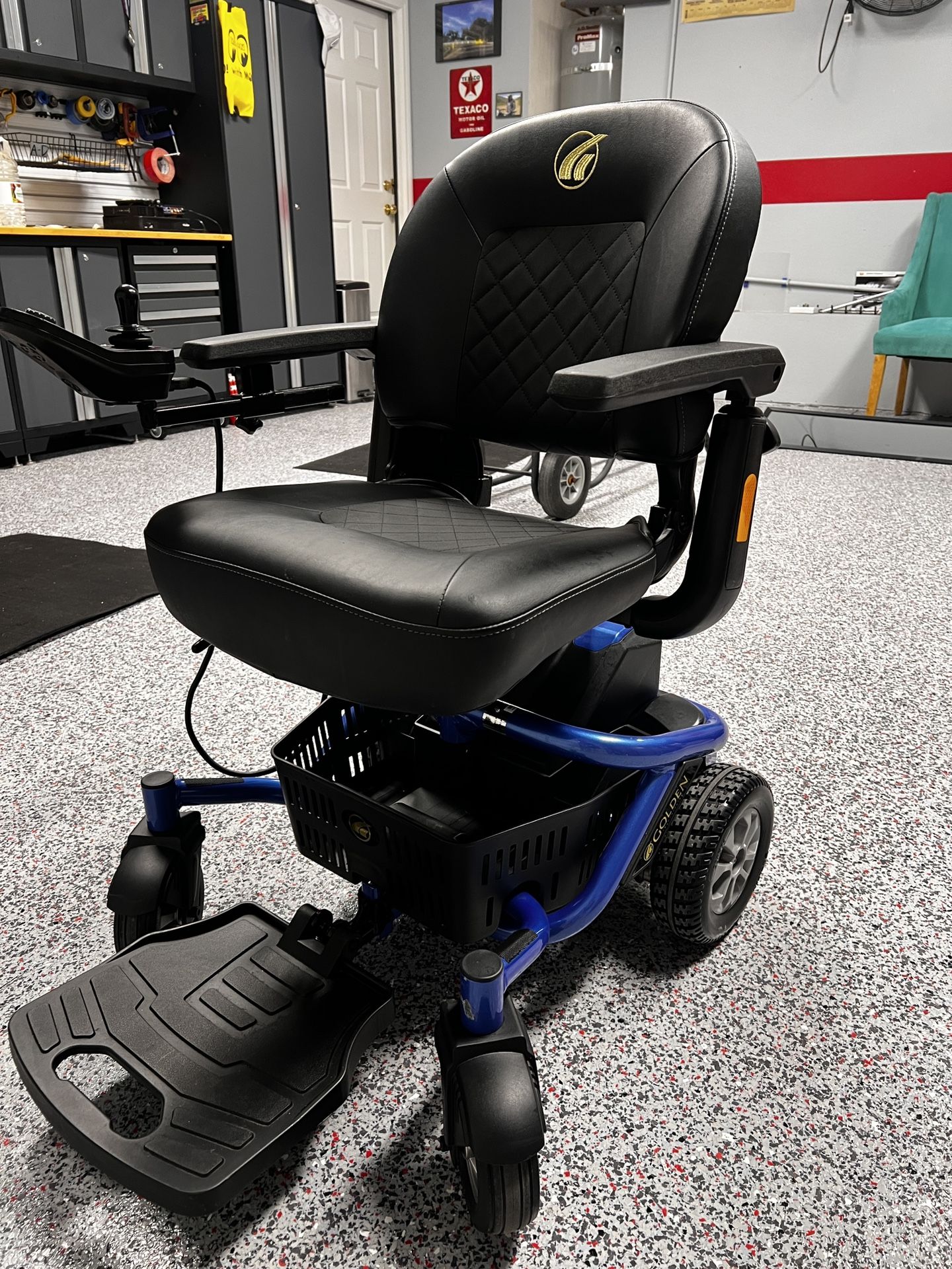 Golden Technologies - LiteRider Envy - Compact Power Chairs (Paradise Blue) Model: GP162C-STD-BL2 In excellent condition. Breaks into four pieces for easy transport, fitting into most car trunks.