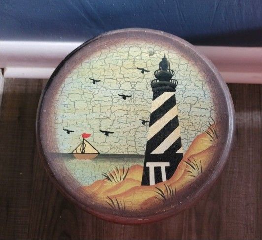 Small Antique Hand Painted Lighthouse Stool. FREE DELIVERY!!!!