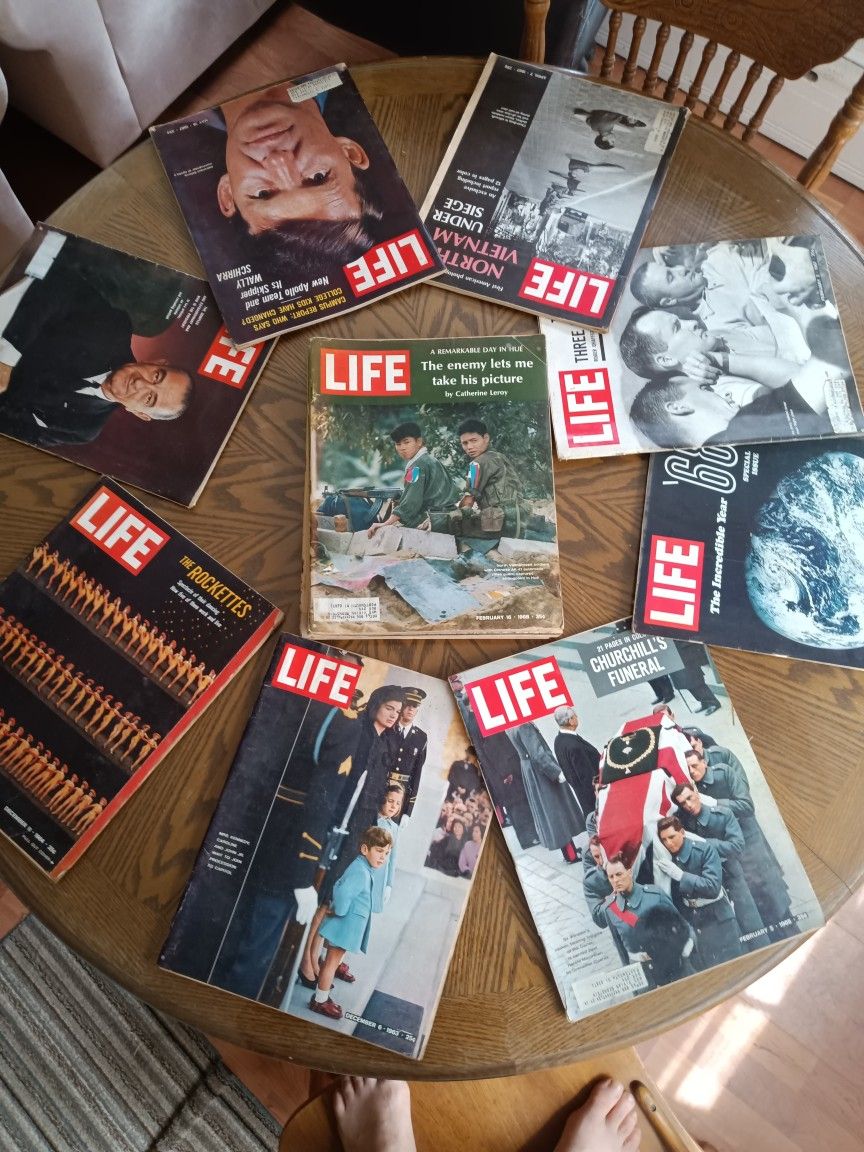 Life magazines from the '60s topics including Kennedy assassination moon landing and Vietnam War