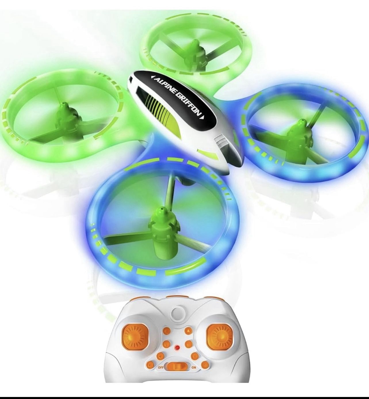 The ultra-portable mini drone includes 4 spare propellers, 2 USB charging cables and drone remote control. 4-channel remote transmitter that allows you to fly multiple flying toy drones at once. The headless mode and 3-speed