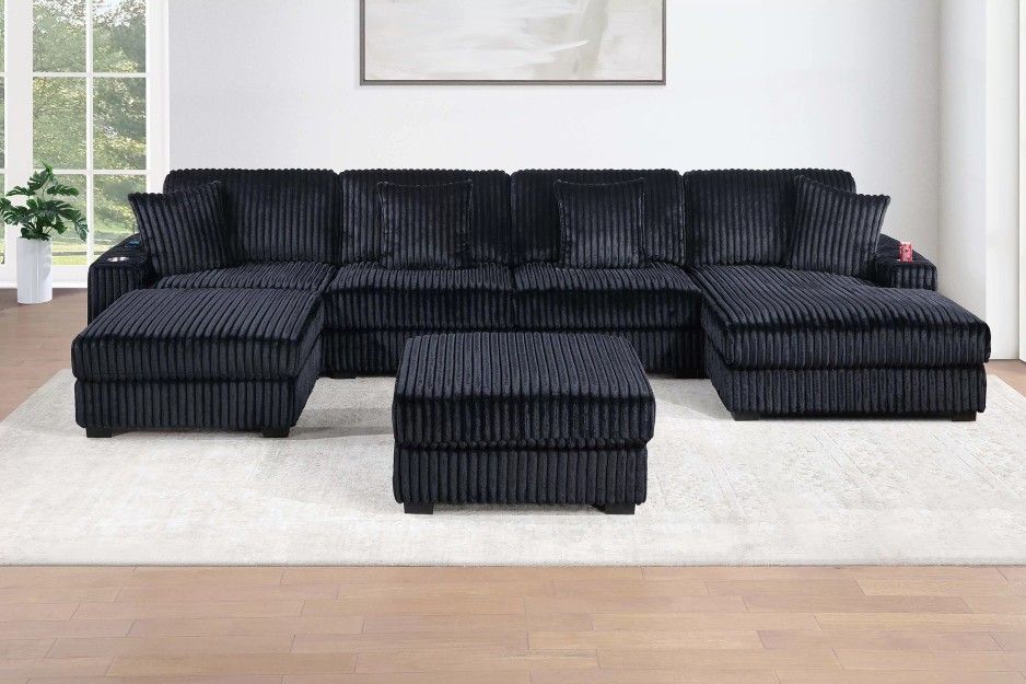 Brand New Black Corduroy Modular Sectional Sofa w Ottoman