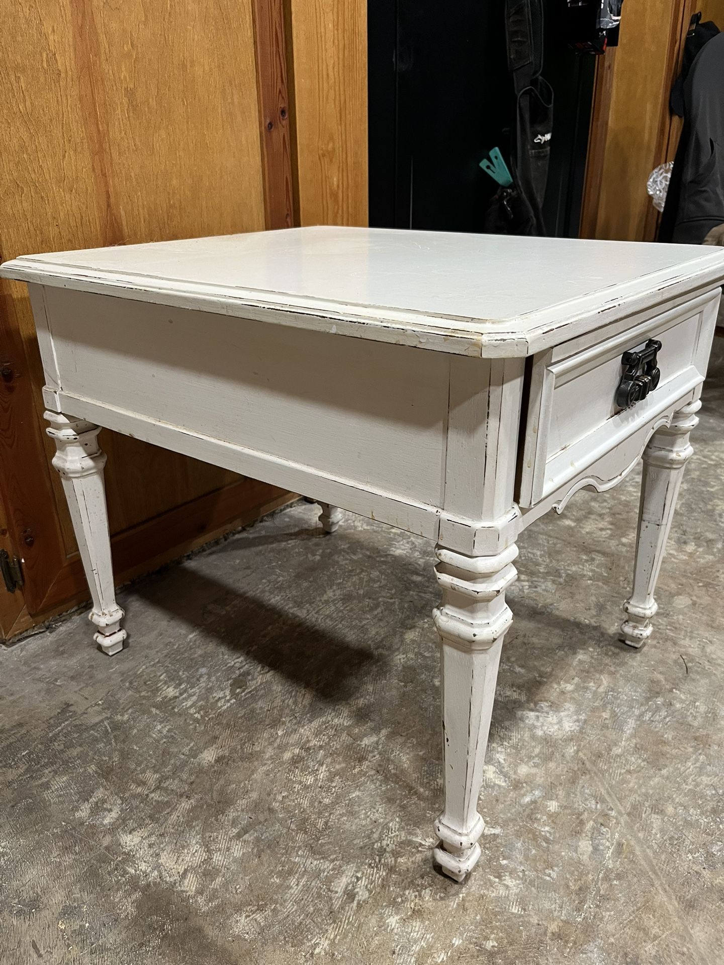 This table is 26”W x 21”D x 21”T with 1 drawer