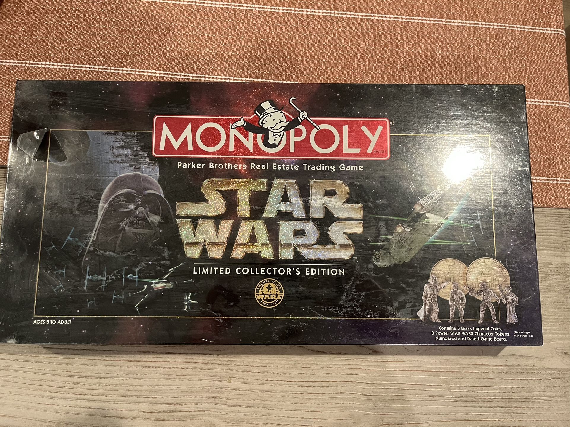Experience the thrill of the galaxy far, far away with this limited collector's edition of the classic board game, Monopoly. Featuring iconic characters and locations from the Star Wars franchise, this complete game is perfect for 2 or more players, ages 8 and up. The 1996 edition, produced by Parker Brothers, includes all the features and aspects that fans of the game have come to love, such as the chance to accumulate wealth, build hotels, and strategically bankrupt your opponents. Whether you're a fan of finance or just looking for a fun family game night, Star Wars Monopoly is sure to provide hours of entertainment. Box has damage, see pictures for condition. Bin 294C
