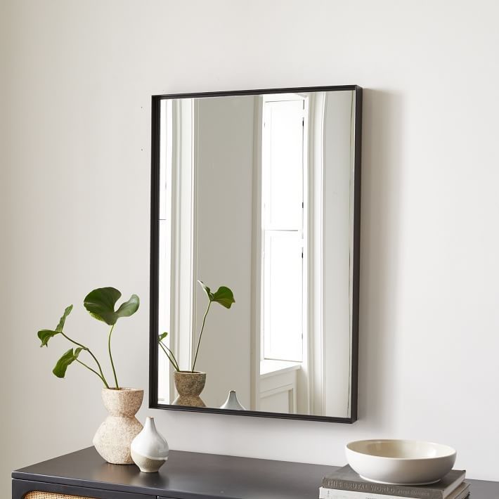 Deep Frame Rectangle Thin Metal Wall Mirror Quick and easy to hang with included hardware. Perfect for any room Overall: 24"w x 2.4"d x 36"h Frame width: 0.4" Mirror surface: 23.2"w x 35.2"h Product weight: 25.9 lbs